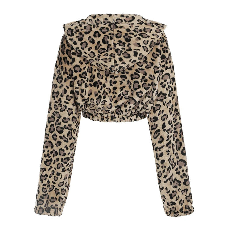 Y2k Leopard Retro Jackets Fashion Women Streetwear Clothing Long Sleeve Fleece Cropped Coat Autumn Winter New