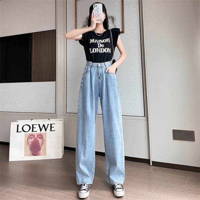 Spring White Plus Size High Waist Jeans Streetwear Wide Leg Pants Women's Fashion Trousers Full Length Loose Denim Pants