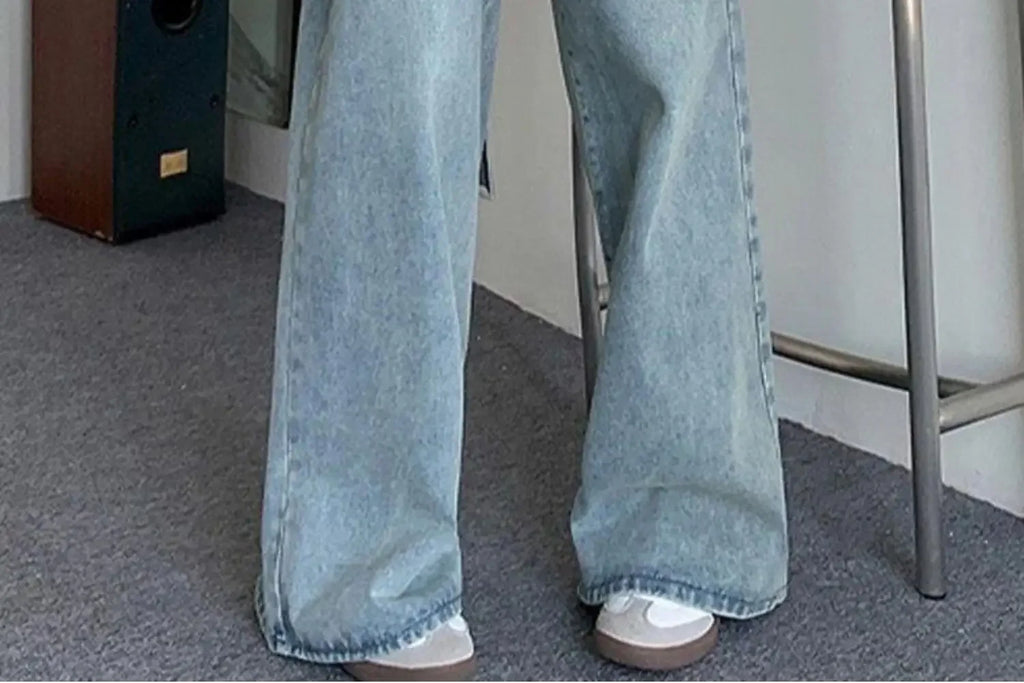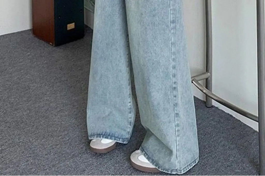 Elastic Waist High Waist Wide Leg Jeans for Women Loose Straight Blue Long Denim Pants Female Fashion Streetwear Jeans