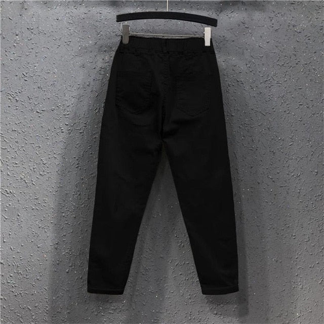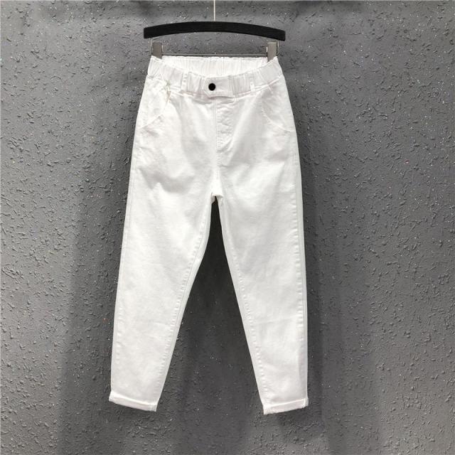 New Arrival Summer Women Harem Pants All-matched Casual Cotton Denim Pants Elastic Waist Plus Size Yellow White Jeans