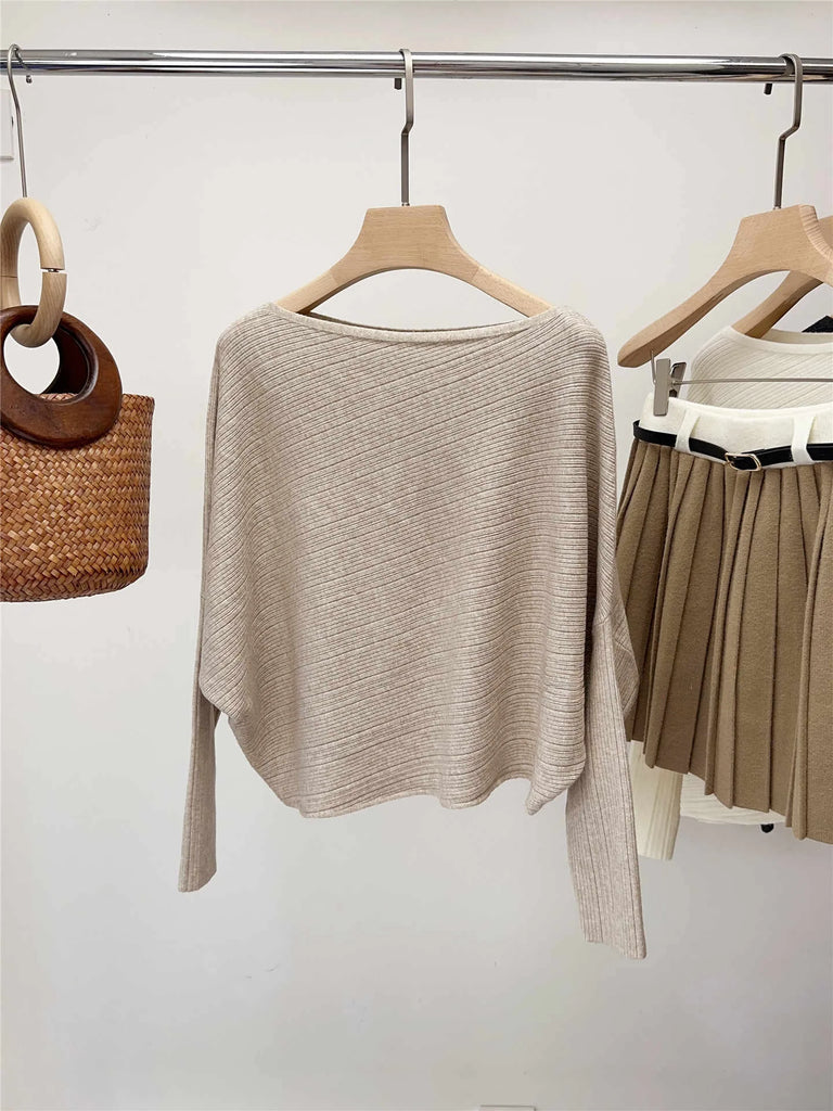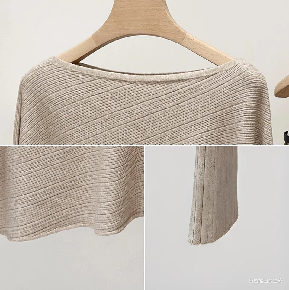Asymmetric Knit Poncho Sweater for Women Long Sleeve Boat-neck Pullover Tops Cosy Knitwear Ladies Autumn Winter Casual Outfit