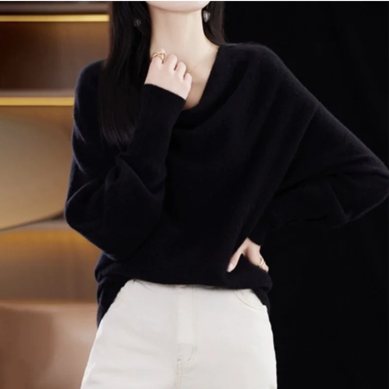 Cowl Neck Knit Top for Women Batwing Sleeve Sweater Pullovers Female Fine Knitwear Autumn Winter Elegant Outfit