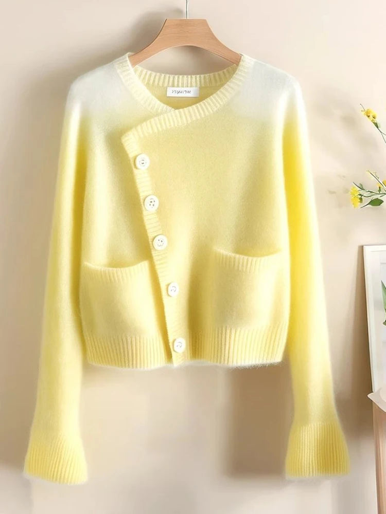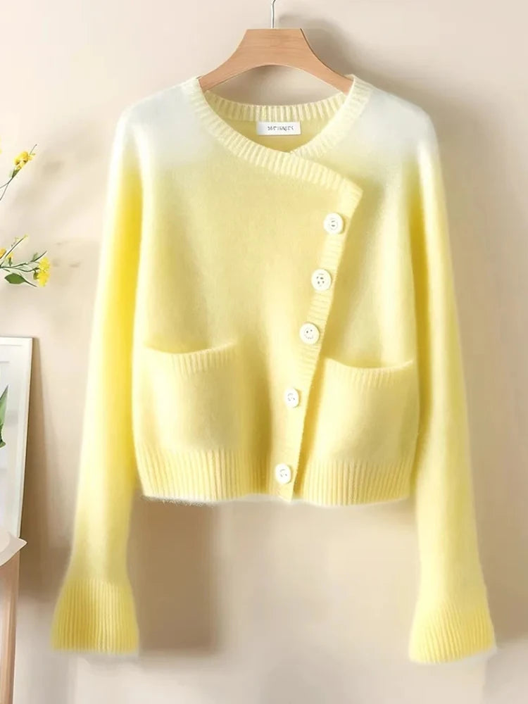 Gradient Yellow Sweet Cardigan Women Elegant Lazy Wind Long Sleeve Knitted Sweaters Vintage Design Female Fall Pockets Tops New