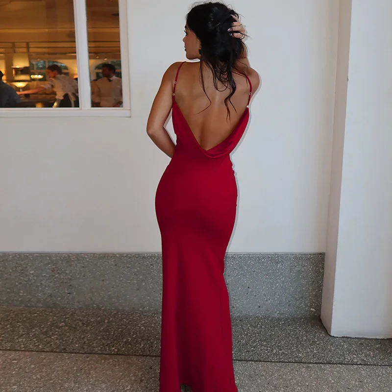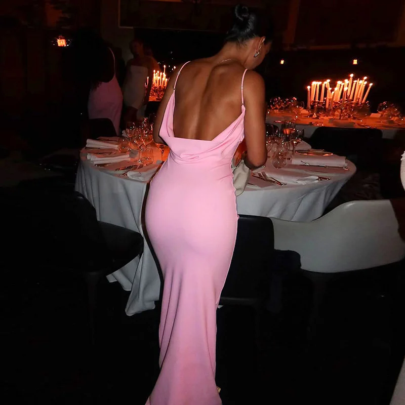 Spaghetti Strap Backless Sexy Maxi Dress Women Gown Summer New Fashion Solid High Waist Evening Beach Club Long Dress