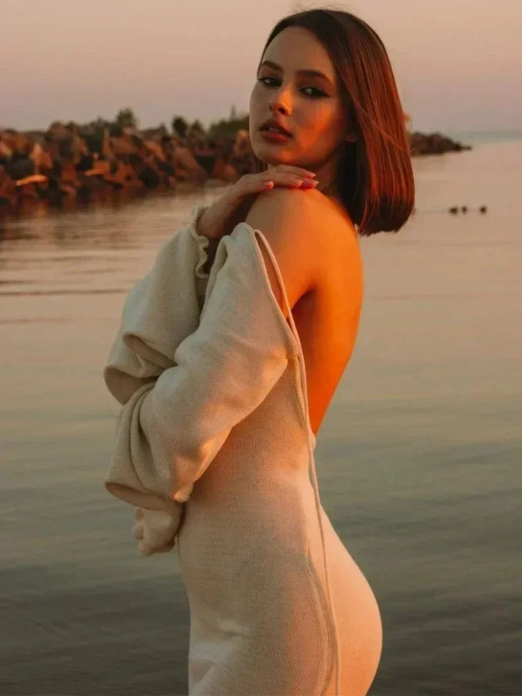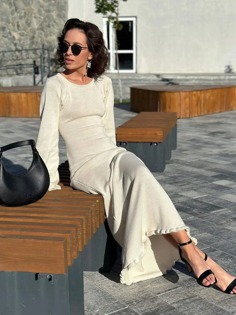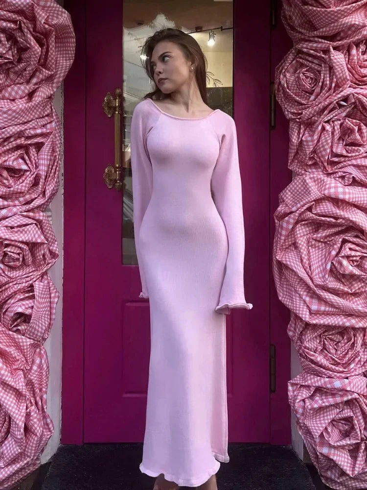 Knitted Backless Long Dress For Women Ruffled Lace Up High Waist Maxi Dresses Femme Party Elegant Bandage Fashion Dress
