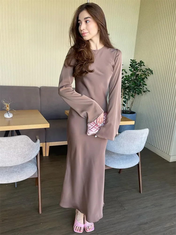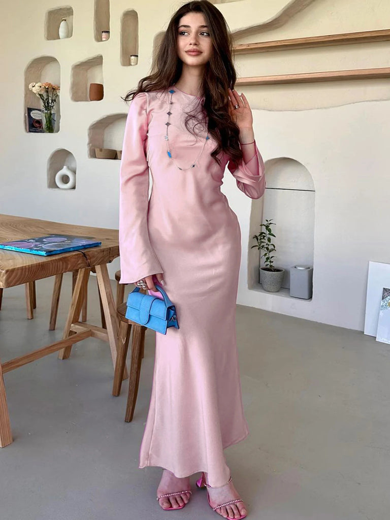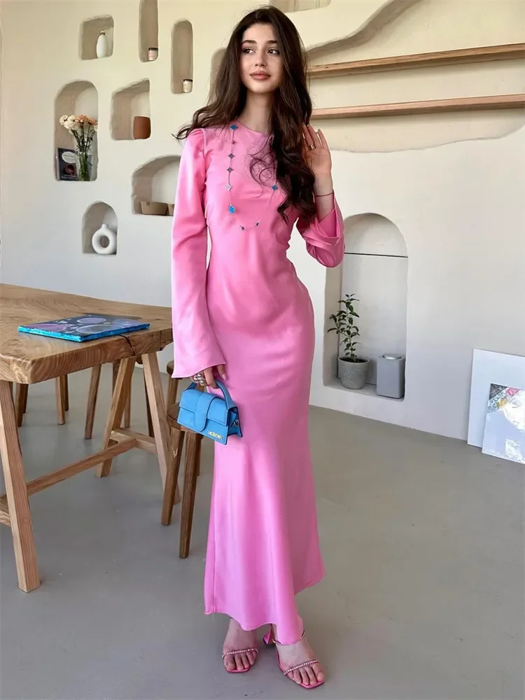 Stain Slim Maxi Dresses For Women Elegant Solid Party Evening Dress Women's High Waist Luxury Femme Autumn Fashion Dress