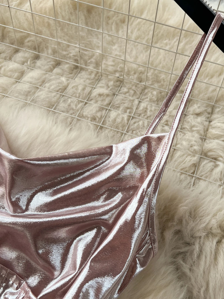 Sexy Spaghetti Strap Dress Women Elegant Shinny Sleeveless Backless Lace-up Bandage Slim Split Midi Ladies Dress Summer