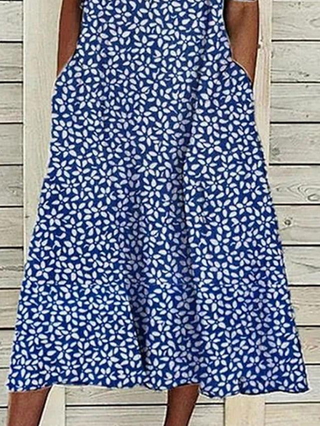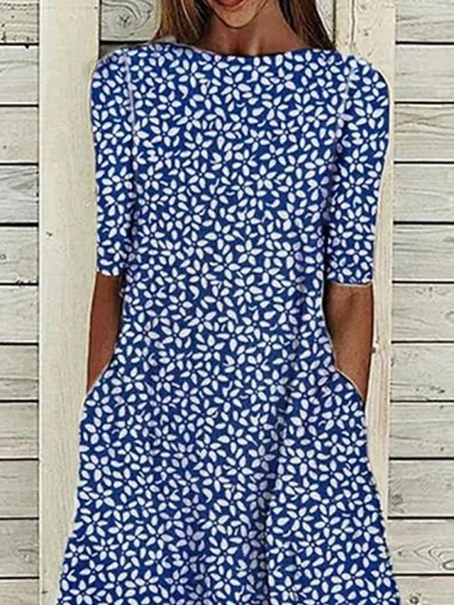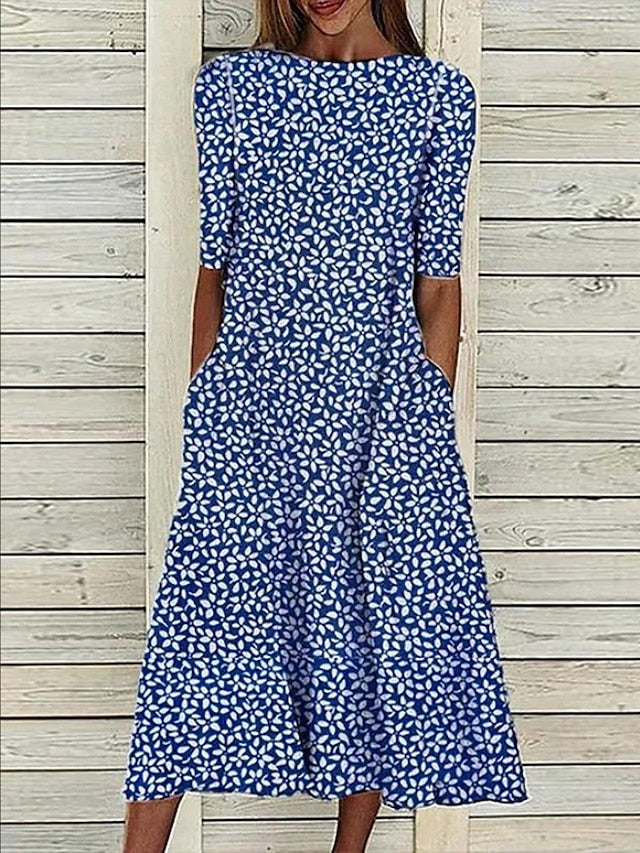 Women's Casual Dress Shift Dress Midi Dress Blue Half Sleeve Floral Loose Spring Summer Crew Neck Basic 2023 3XL