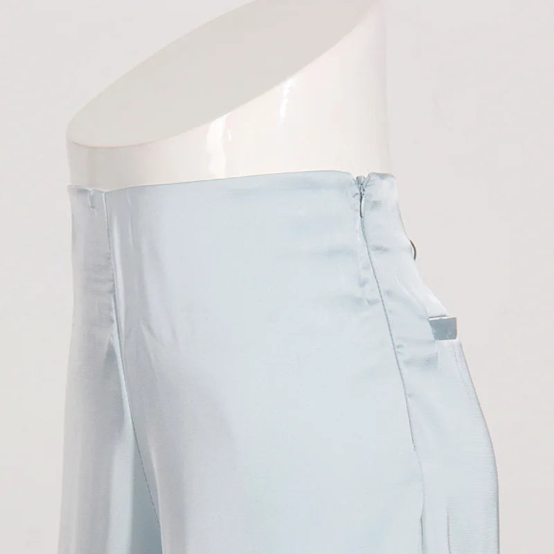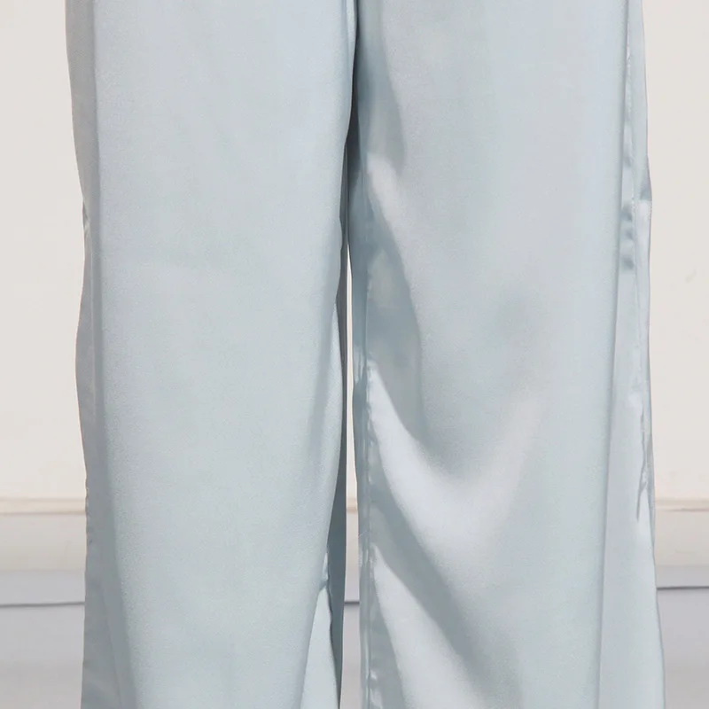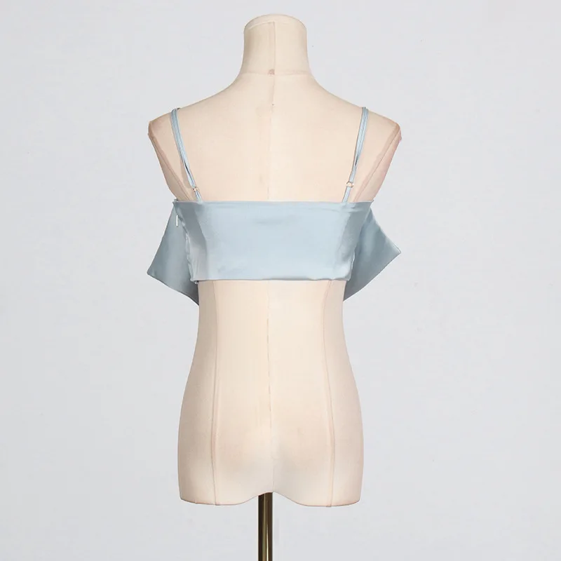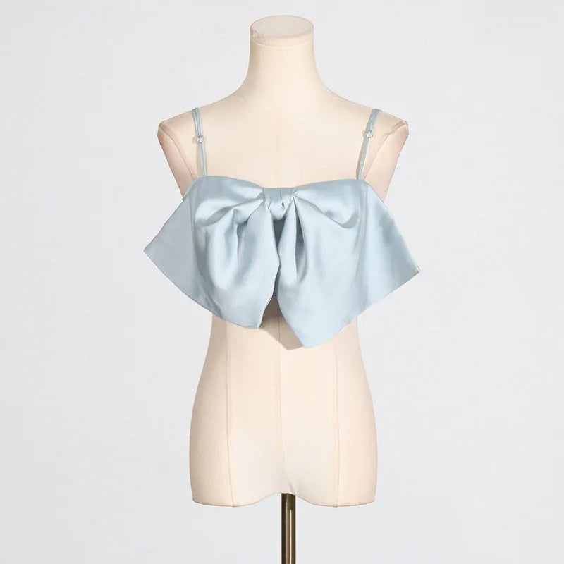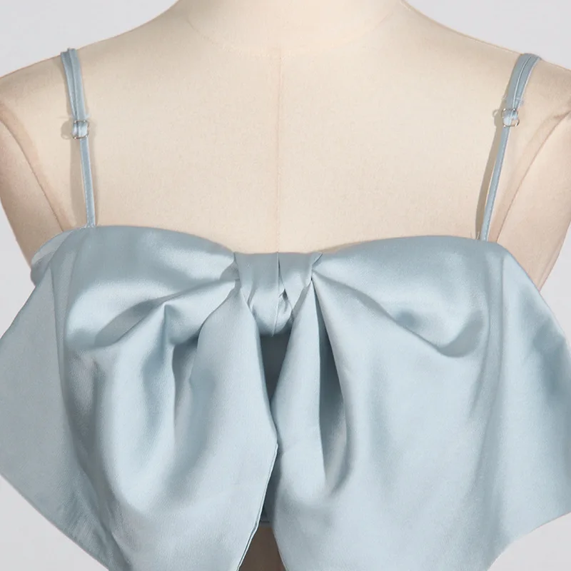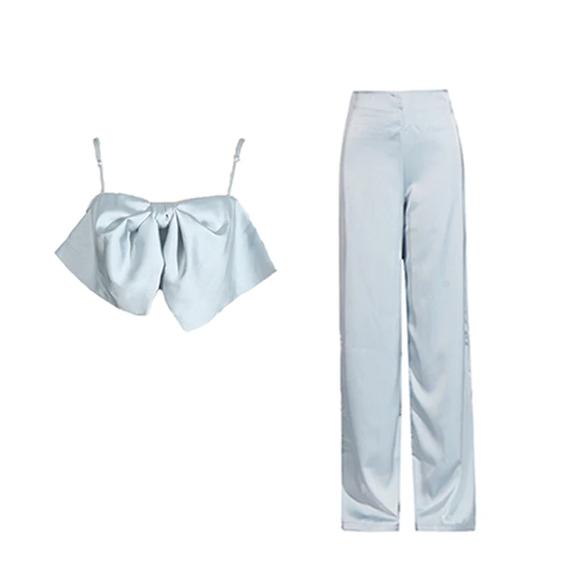 Chic Large Bow Camisole And Zipper Pant Sets Satin Tank Top + High Waist Straight Trouser 2 Piece Set Summer Vacation Women Sets