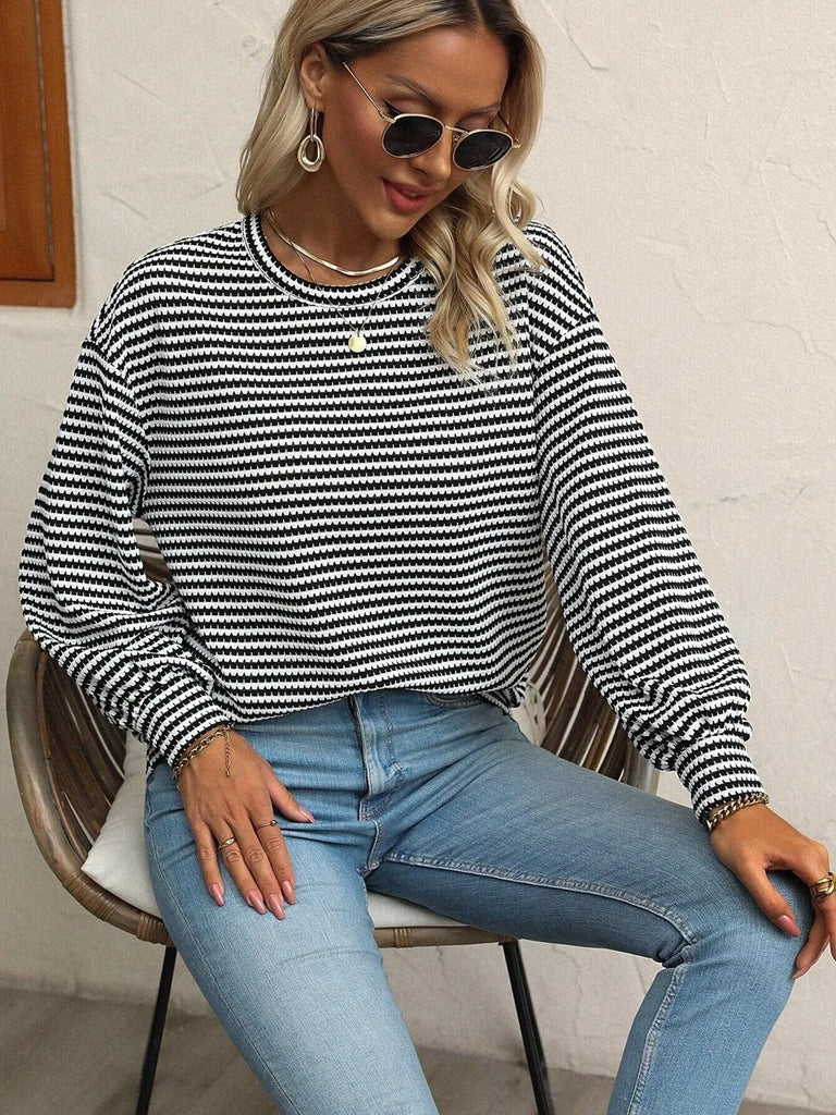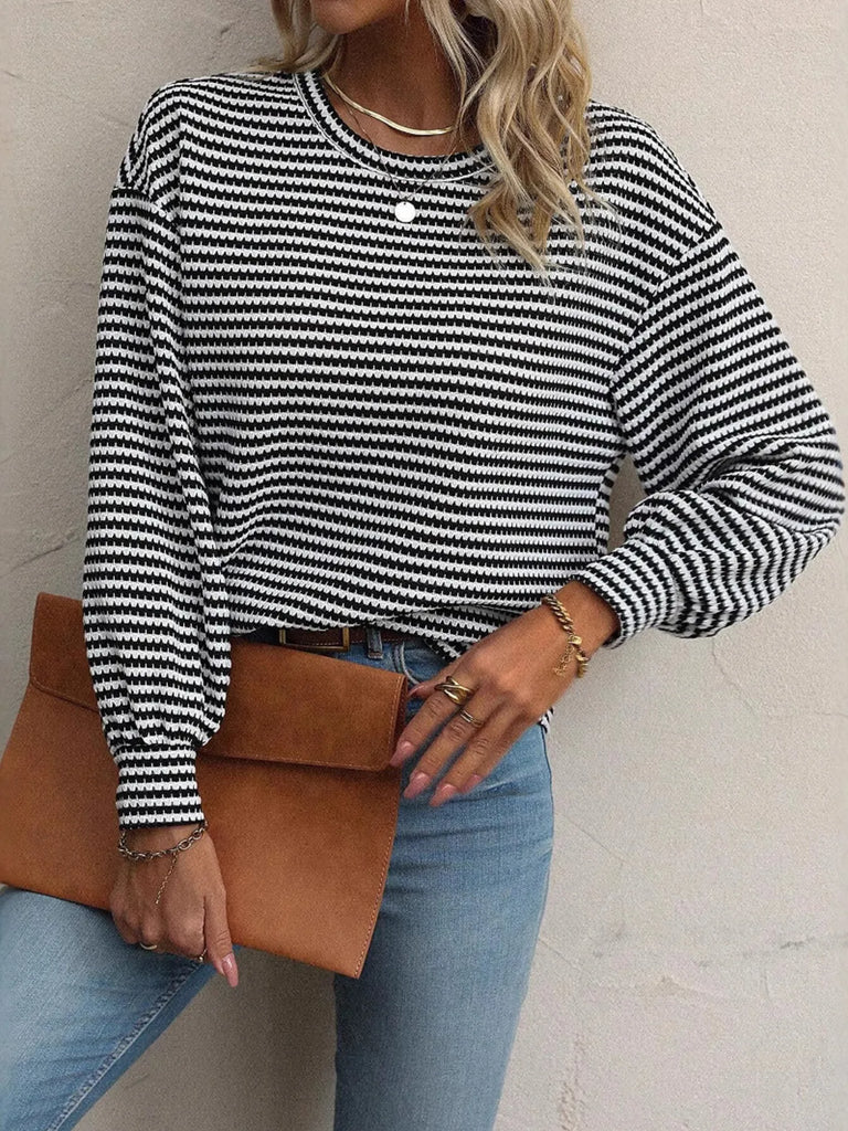 Striped Round Neck Lantern Sleeve Top