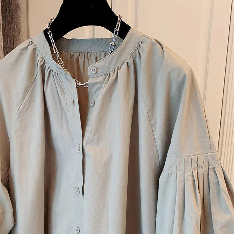 Womens Tops and Blouses Causal Puff Sleeve O-neck Causal Shirts Spring New Korean Solid
