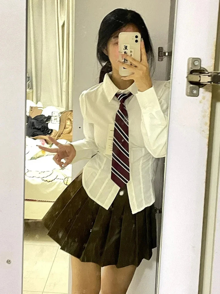 Y2K White Shirts Women Streetwear Tunic Long Sleeve Crop Tops Students Jk Preppy Korean Fashion Basic Slim All Match Blouses New