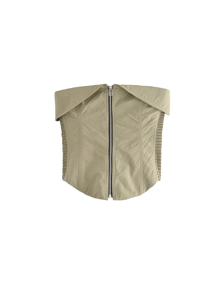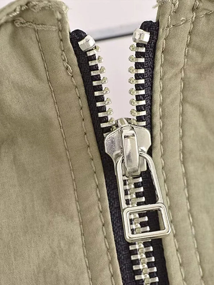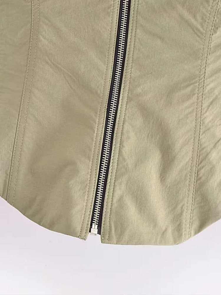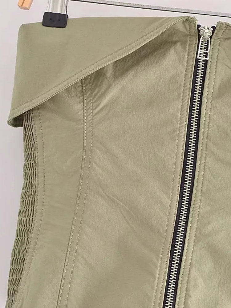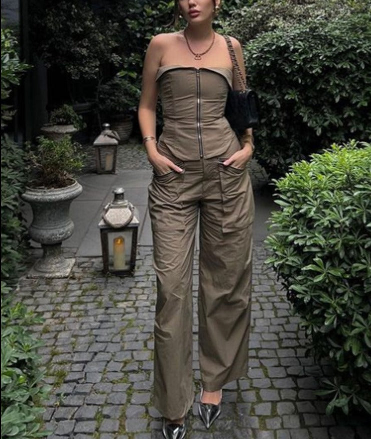 Woman 2 Piece Set Shirt Suit Zip Tight Bra Top+Thread Catching Decorative Zipper Pants Causal Outfits
