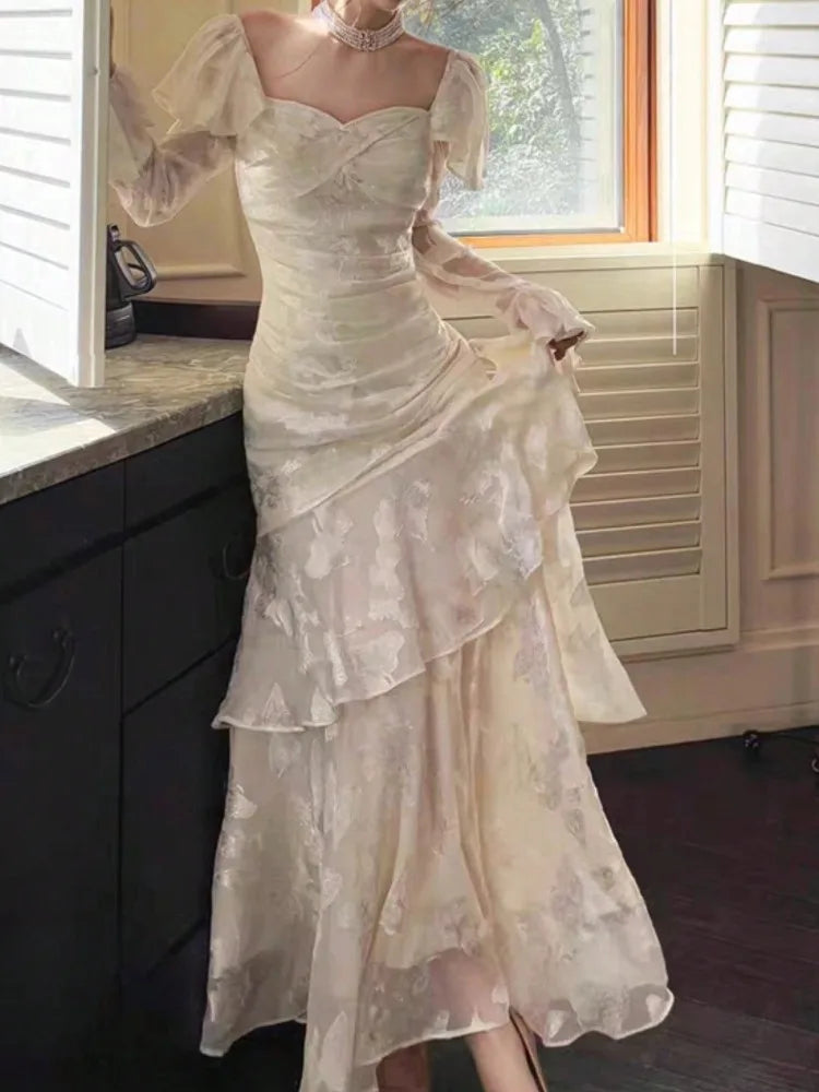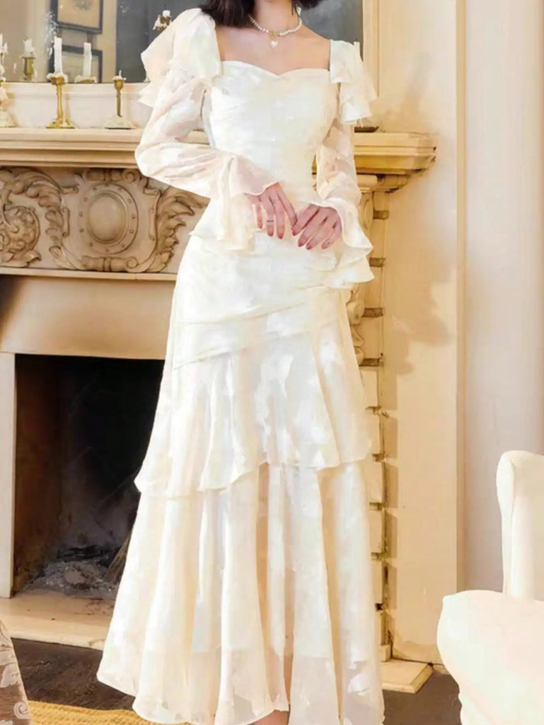 Elegant and Chic Women Fashion Prom Evening Dress French Style Long Sleeve Vintage Fall Autumn Bodycon Party Birthday Mujers