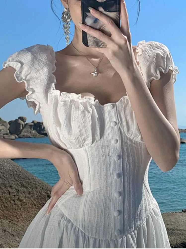 Fashion New Women Elegant White Dress Off Shoulder A-Line Party Prom Dresses Female Solid Chic Birthday Clothes