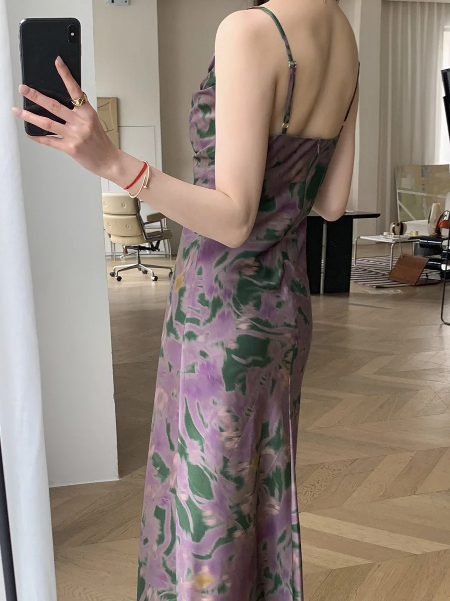 Tie-dye Maxi Prom Dress Sexy Evening Party Dresses Bodycon Spaghetti Strap Summer Dresses for Women