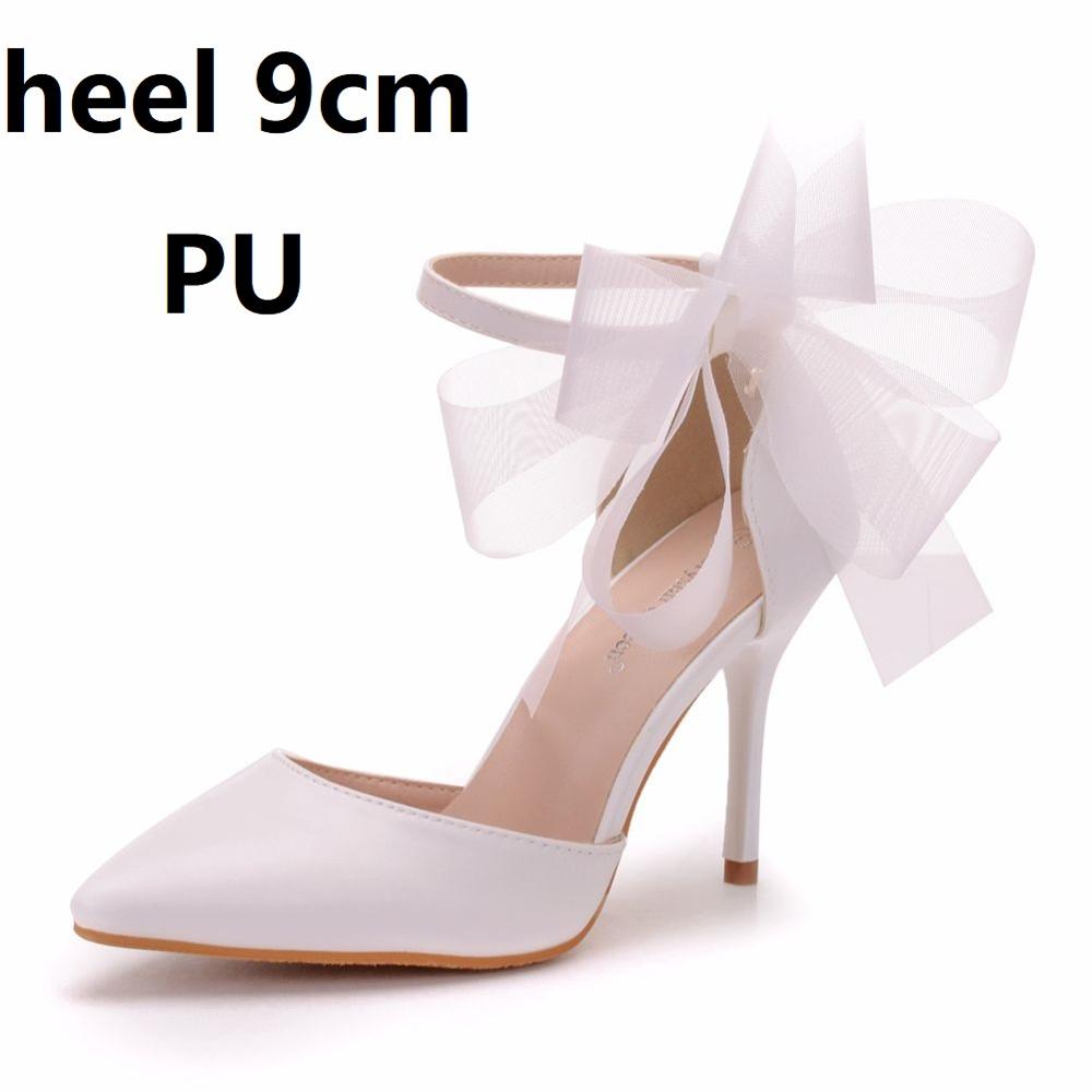 Crystal Queen Woman Satin Stiletto Elegant Ankle Strap Party Bow-knot Sandals Sexy High Heels White Wedding Shoes