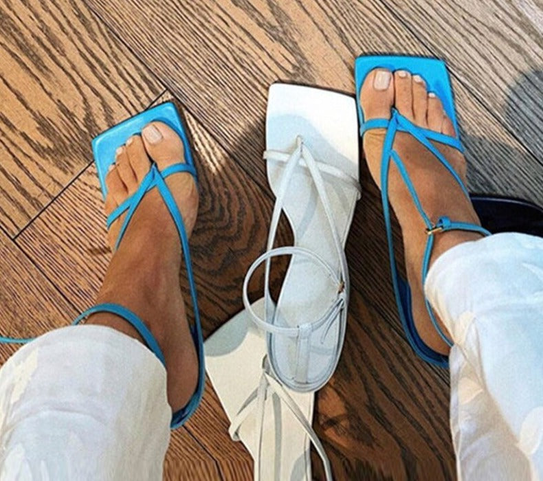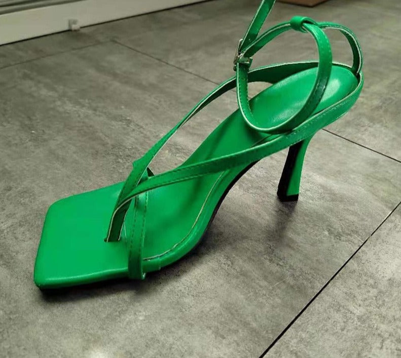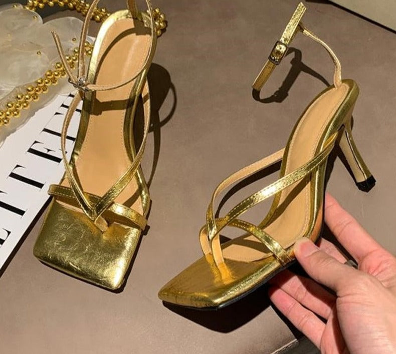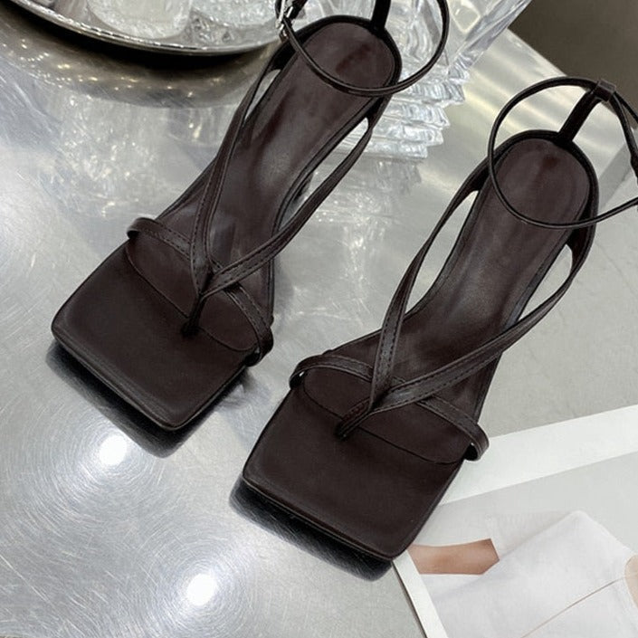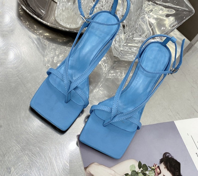 Square Head Ankle Strap Sandals Women Fashion High Heel Gladiator Narrow Band Party Dress Pump Shoes