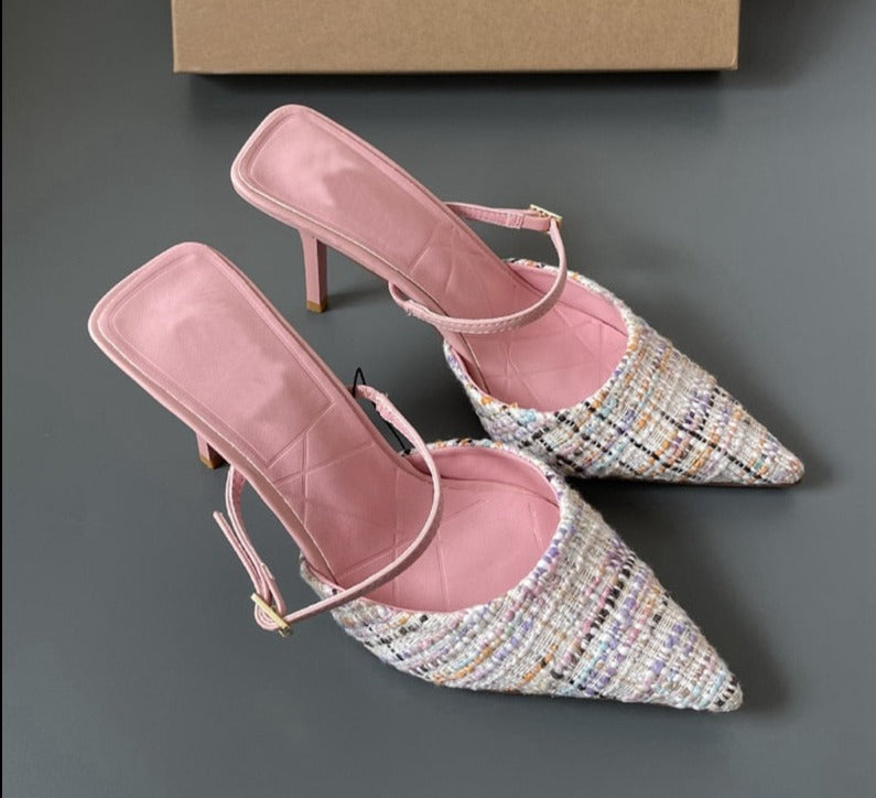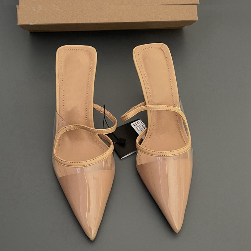 Fashion Brand Women Slipper Thin High Heel Ladies Sandal Shoes Pointed Toe Shallow Slip On Mules Outdoor Slides Mujer