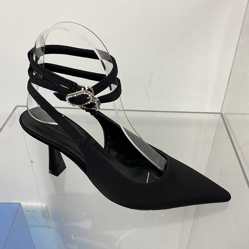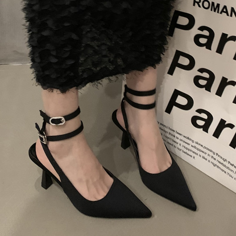 Slingbacks High Heels Pumps Women Pointed Toe Thin Heeled Party Shoes Woman Solid Color Ankle Buckle Summer Sandals