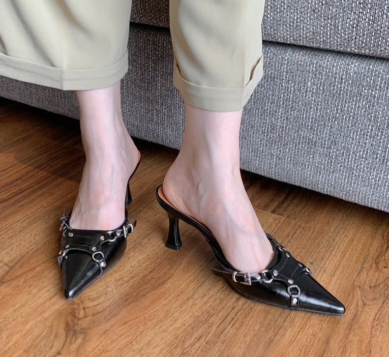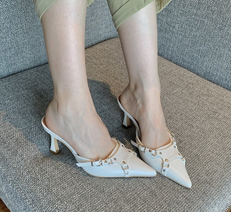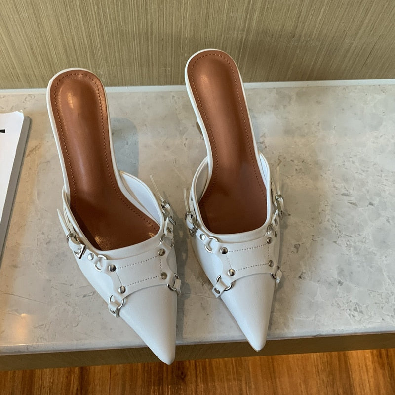 Spring New Brand Women Slipper Fashion Thin High Heel Pointed Toe Women Sandal Shoes Outdoor Dress Mules Shoes