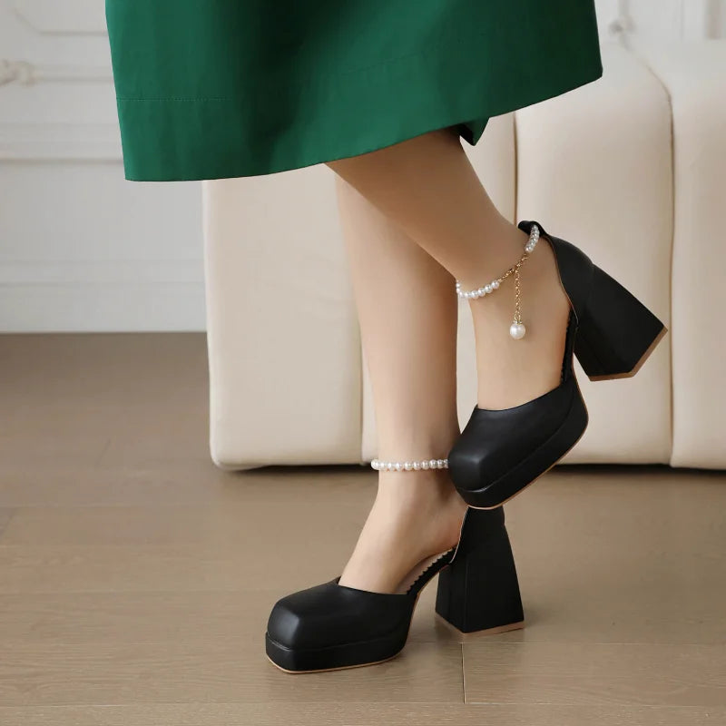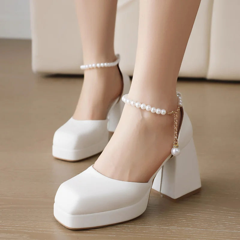 Summer Platform Princess Sandals String Bead Sweet Square Toe High Heels Lolita Fashion Wedding Girls Shoes Pink White