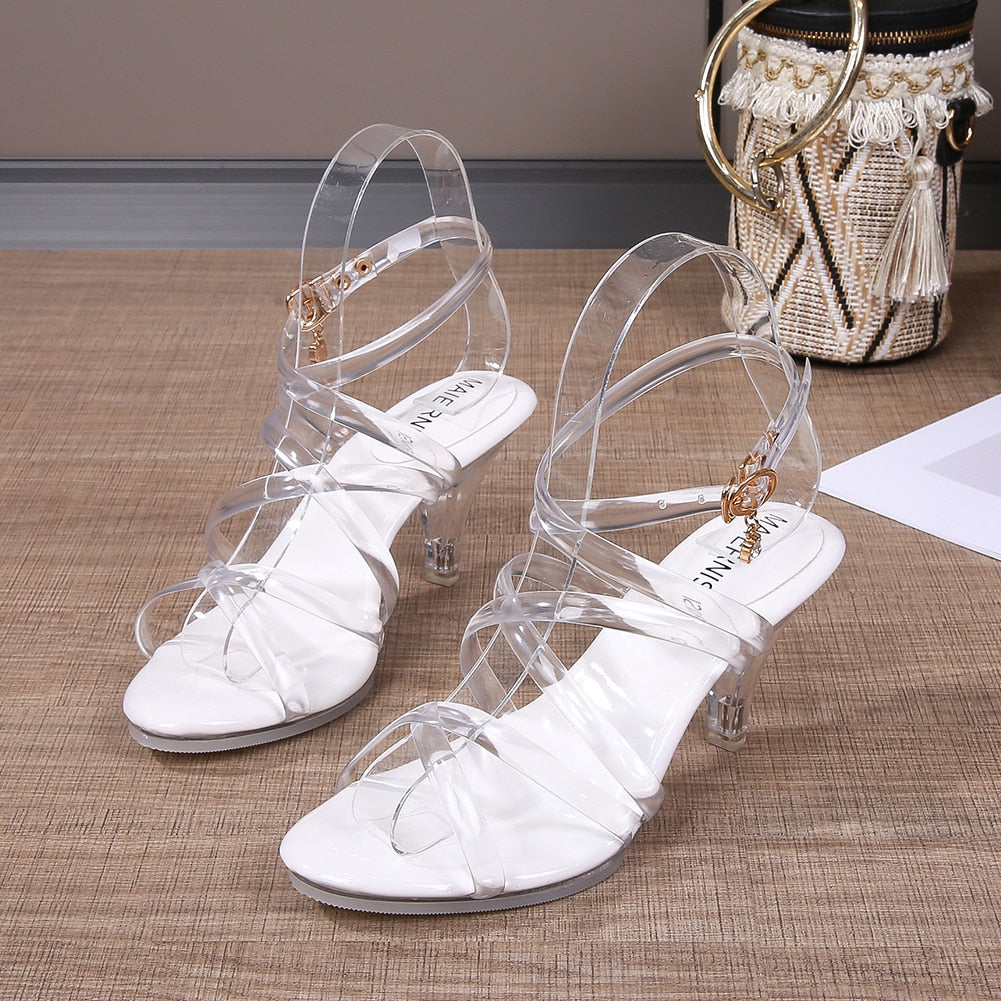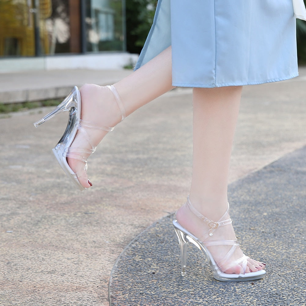 Transparent Sandals Women Silver Clear Pvc Sandals Stiletto High Heeled Sandals Woman Sexy Crystal Shoes Stripper Wedding Size43