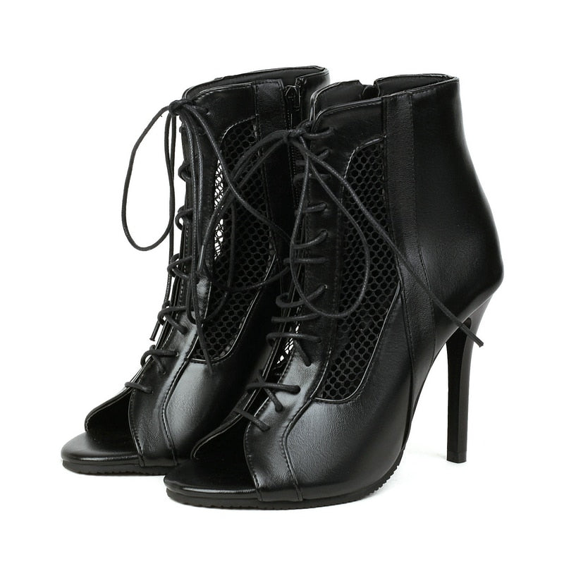 Women Sandals Fashion Sexy Thin High Heels Open Toe Zipper Dancing Shoes Summer Ballroom Dance Short Boots Woman's Size 48