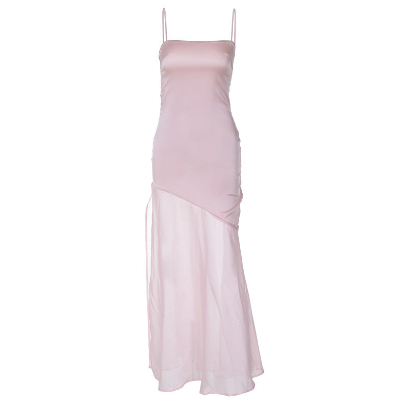 women's clothing summer new style celebrity style sexy temperament chiffon fishtail satin suspender dress female