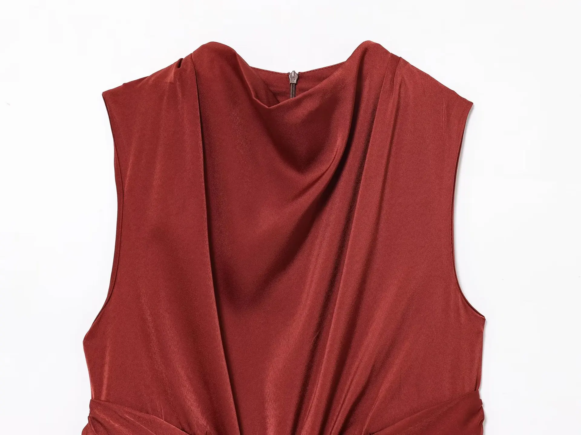 Satin Hollow Out Kink Long Dress Round Neck Sleevelss Party Dress For Summer Elegant Chic Vestidos Woman Clothing