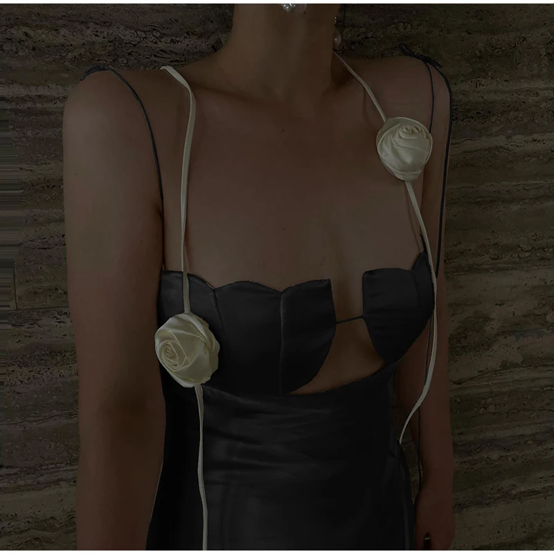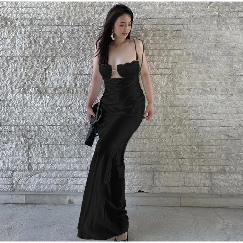 Summer Backless Yellow Satin Slip Dresses Women Elegant Off Shoulder Strapless Floral Chest Long Dress New Lady Party Robes
