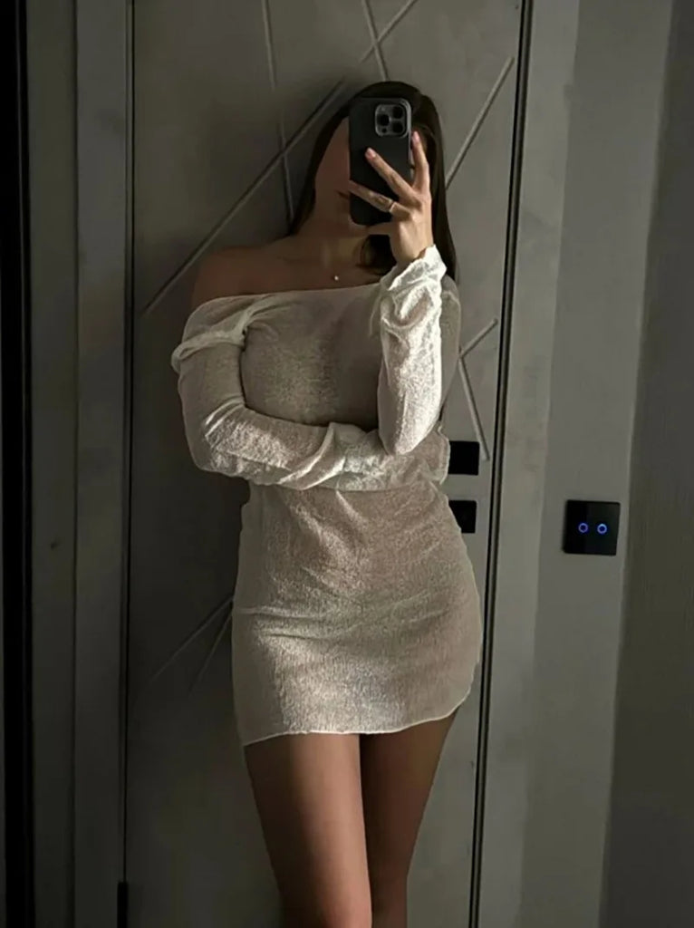 Thin Transparent Knit Tight Short Dress Sexy Backless Bikini Swimsui Cover-ups 2025 New Long Sleeve O-neck Sheer Summer Dress