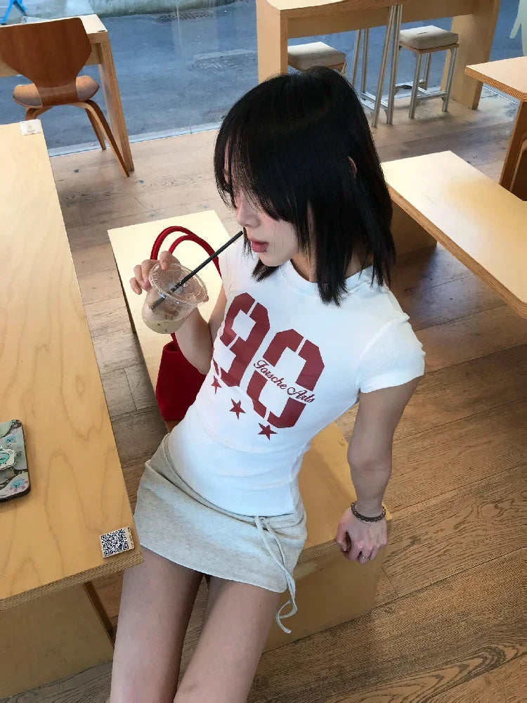 American Summer Short Sleeve T-shirts Women's New Design Slim Fit Sweet and Spicy Sle Printed Tops