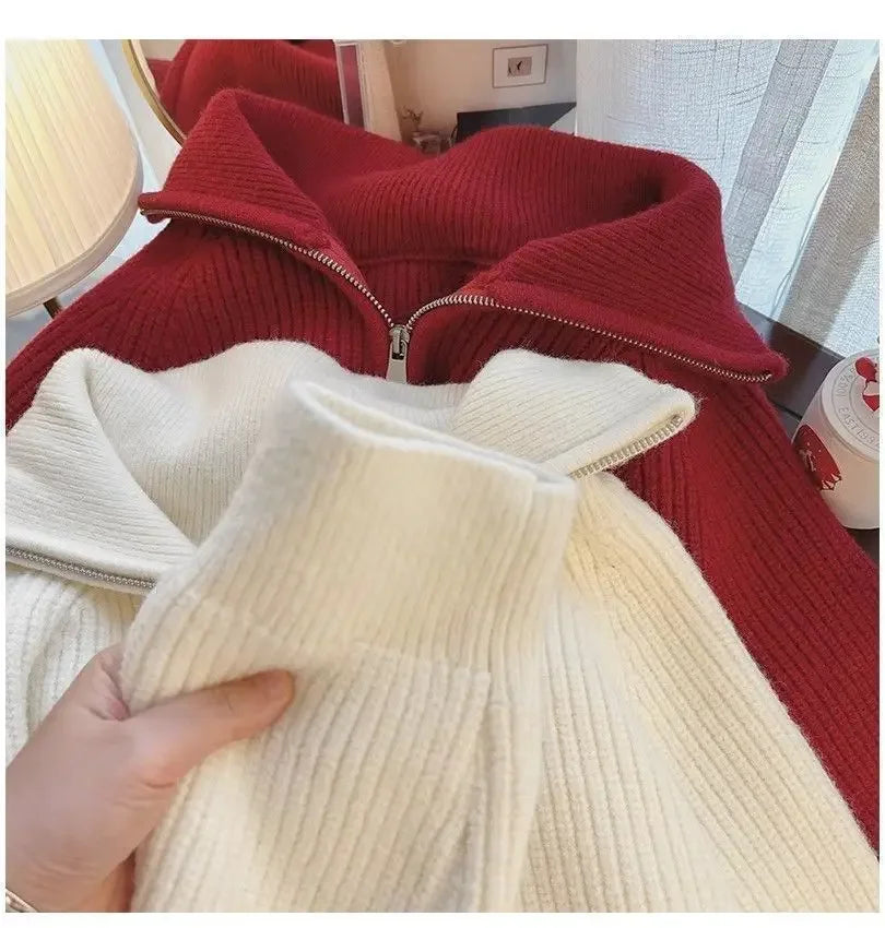 Half Zip Collar Sweater Women Pullovers Soft Knitted Long Sleeve Short Jumper Fall Winter Teen-girl Korean Fashion Outfit