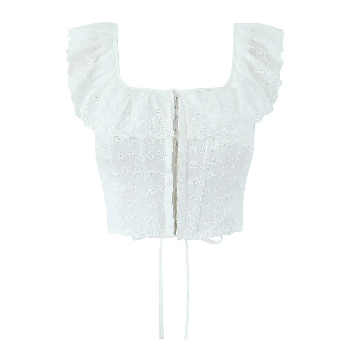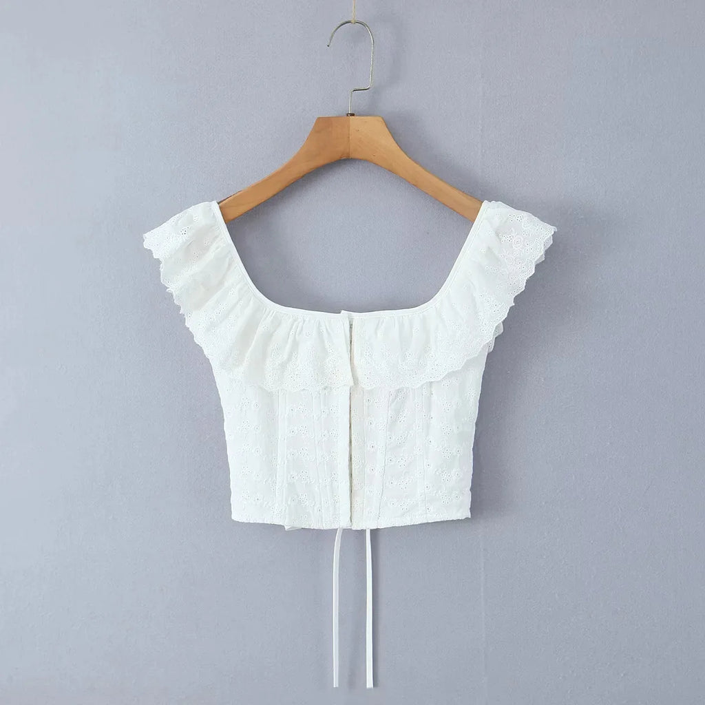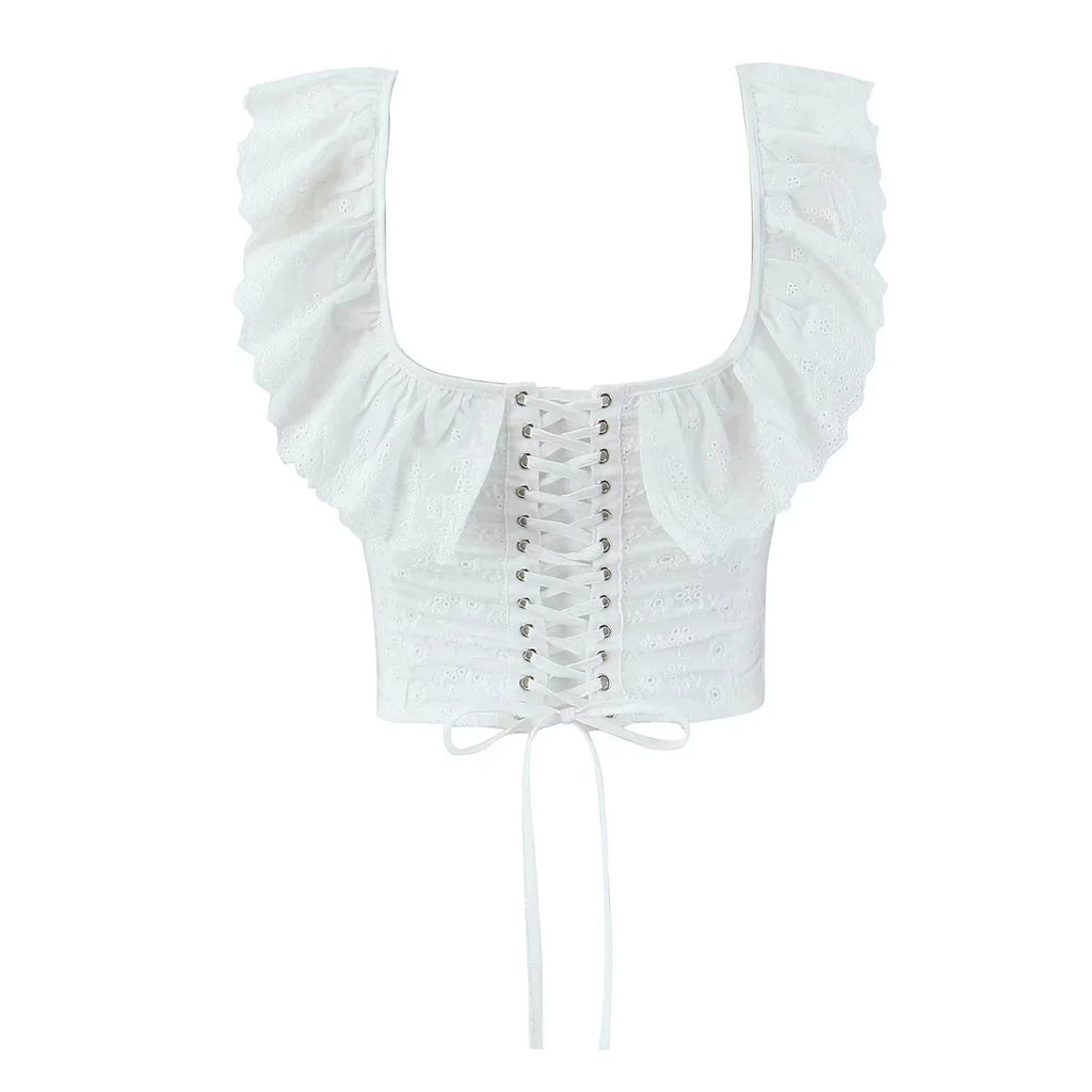 Lace Ruffles Corset Short Vest Women Backless Off Shoulder Cropped Tops 2025 Summer Fishbone Party Club Slim White Tops Clothes
