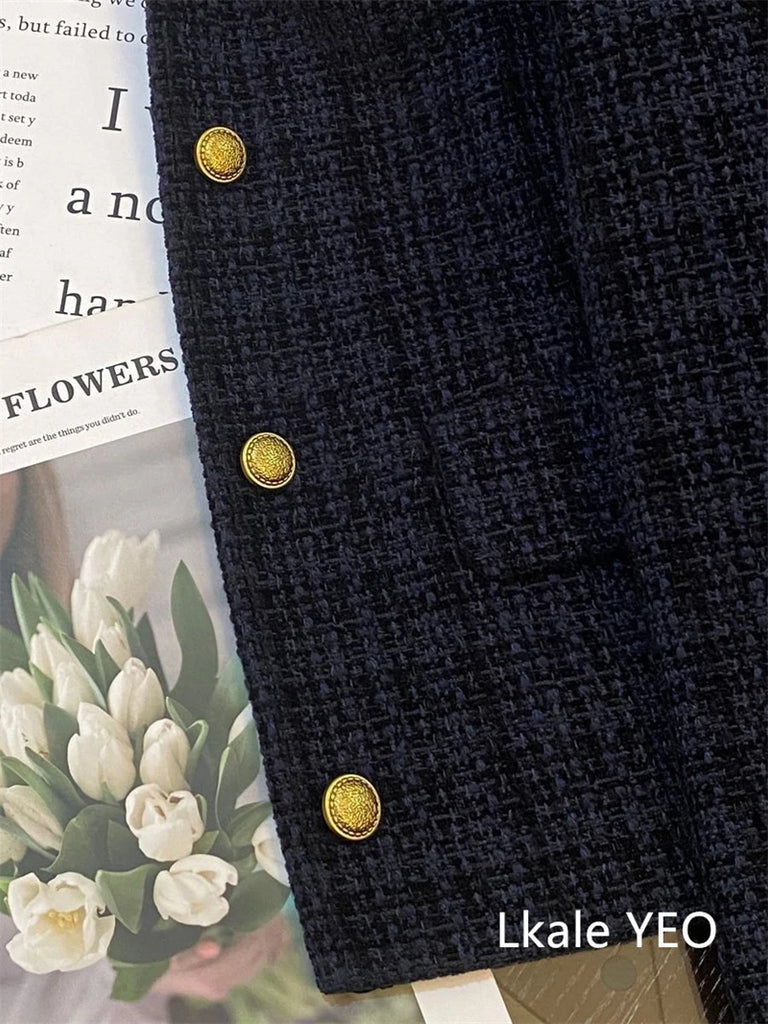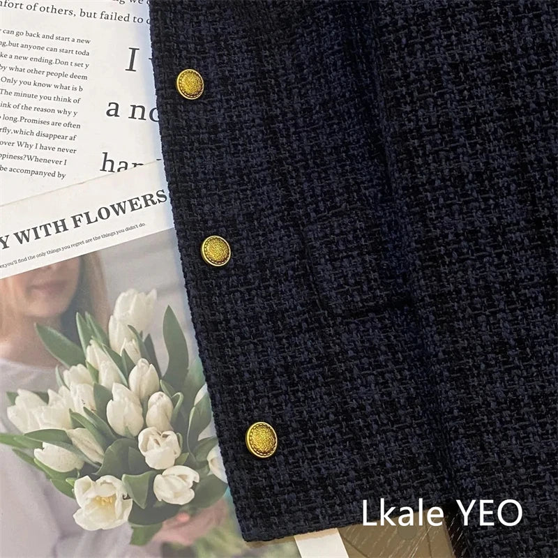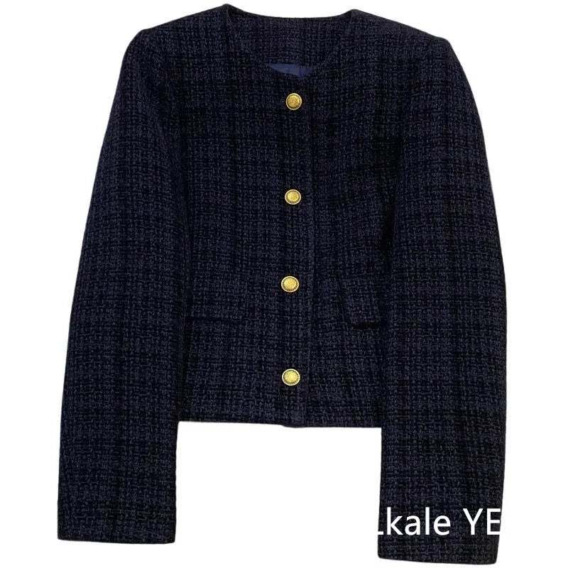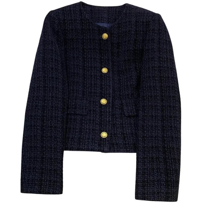 Ladies Short Jacket 2025 Spring Autumn Navy Blue Small Fragrance Lady Outerwear Korean Version Temperament Women's Short Tops