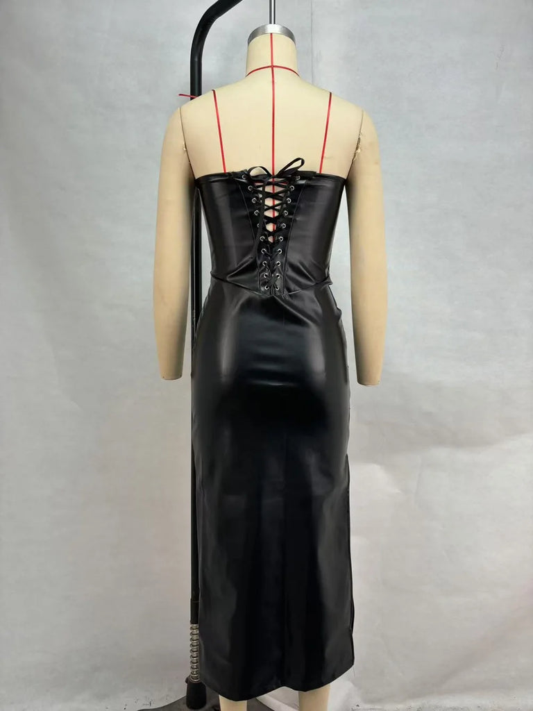 Luxury Leather Strapless Short Dress Chic Womens Summer Sexy Party Waist Curvy Dresses 2025 Evening Red Green Brown Y2K Cocktail