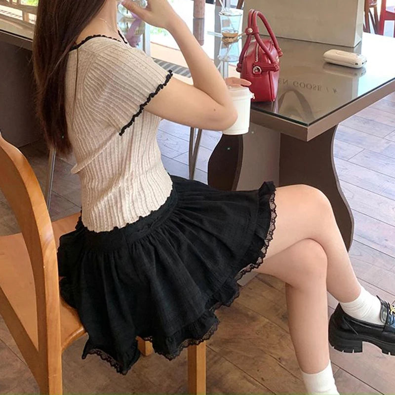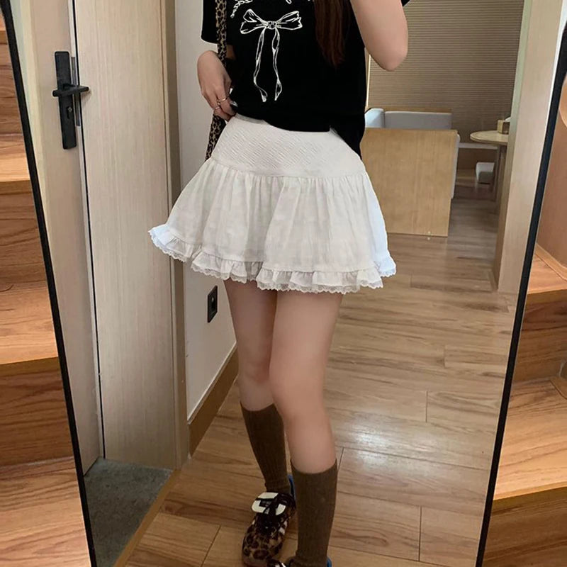 Summer White Lace Mini Skirt Women Korean Chic High Waist Y2k Short Skirts Woman Ballet Style Ruffles Cake Skirts Female