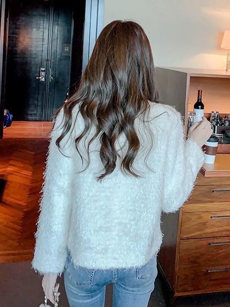Sweet Tassel Slim Tweed Jacket Women Fashion Long Sleeve Korean O Neck Short Coat Chic Elegant Fall Small Fragrance Tops