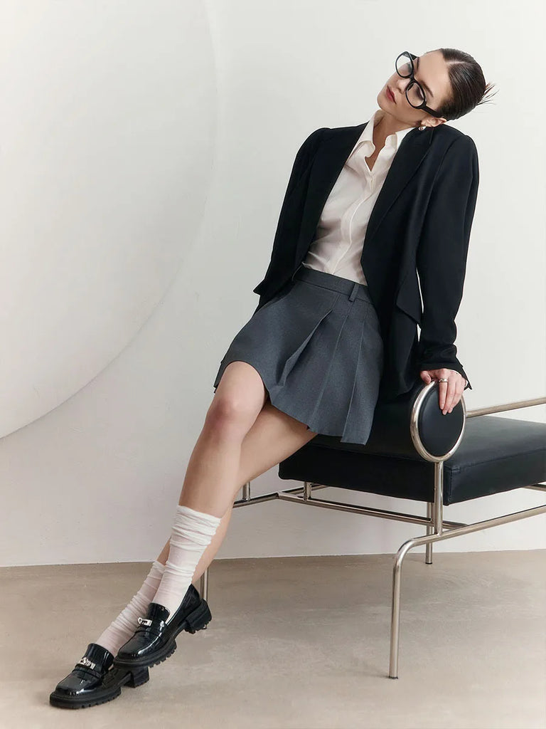 Fashion Solid Gray Pleated Short Skirt 2025 New Spring Summer High Waist A-line Women Skirts College Style Sweet Woman Clothing