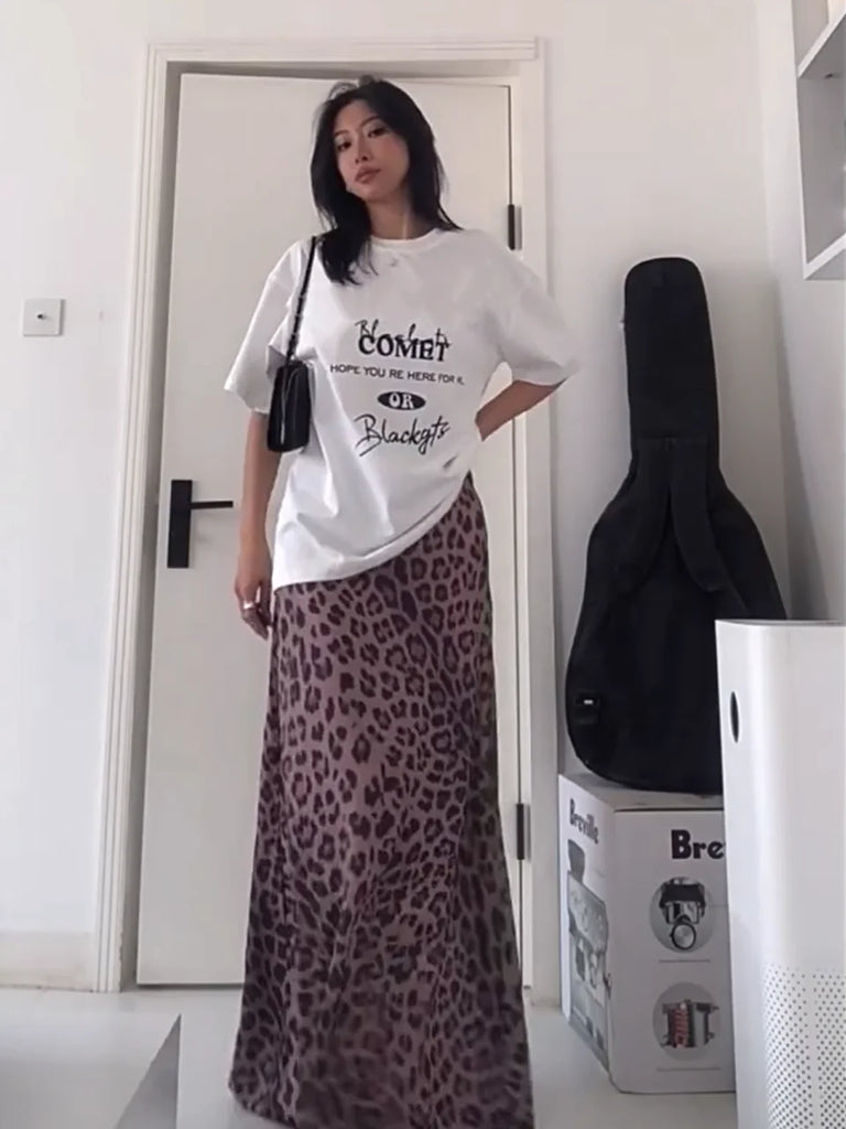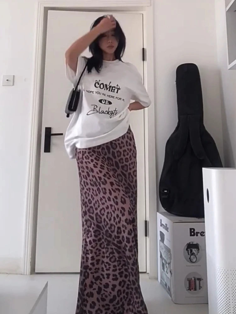 Leopard Print Long Skirt Women Summer Vintage Sexy High Waist Slim Elegant Trumpet Skirt Female High Street Chic