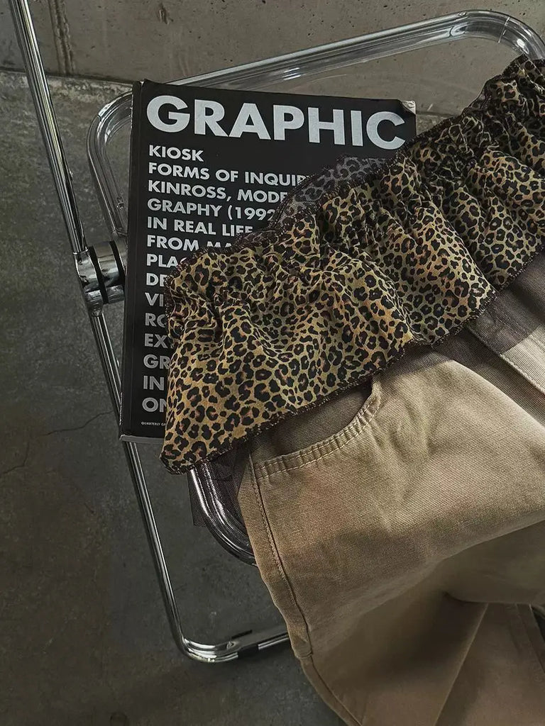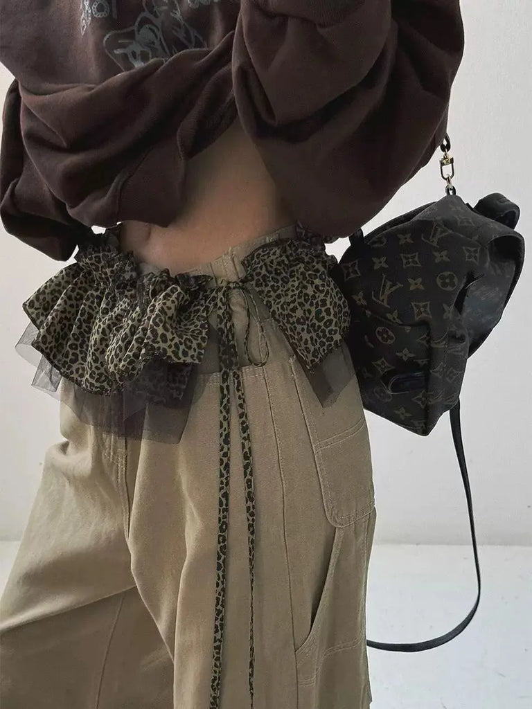 Korean Style Leopard Print Mini Skirts Women Y2k Fashion Lace Up Short Skirt Elegant Sweet Streetwear Cute Ruffle Skirt