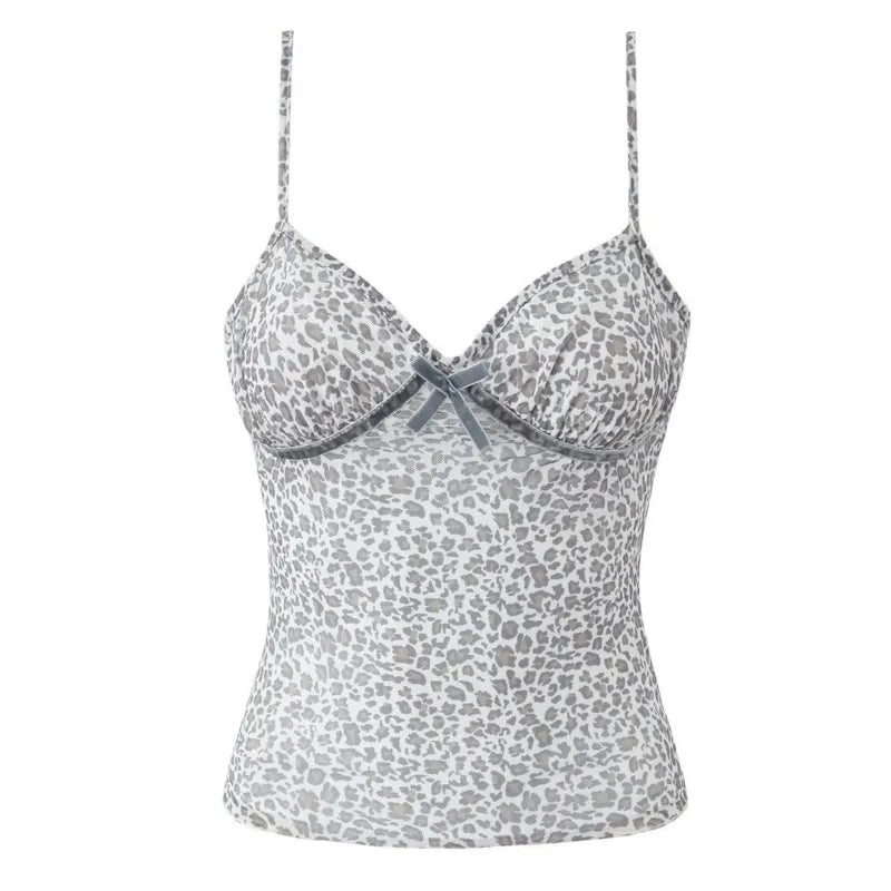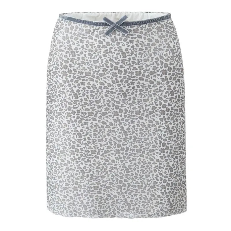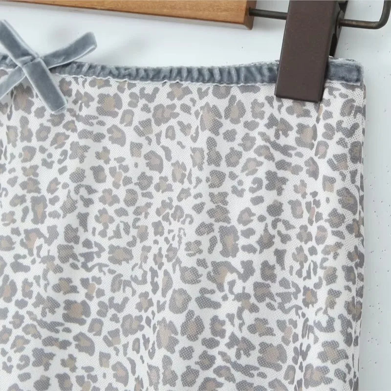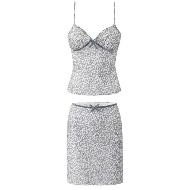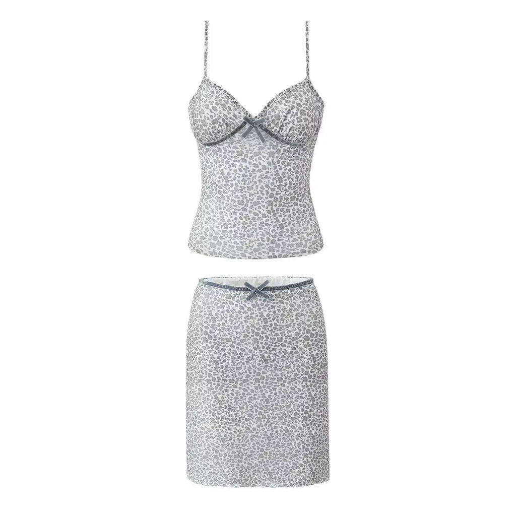 Leopard Print Bow Sexy Crop Top And Short Skirt Fashion Summer Outfits 2025 New Velvet Pathwork Camisole +skirt Two Piece Set