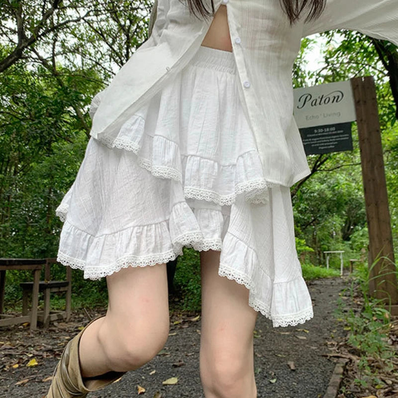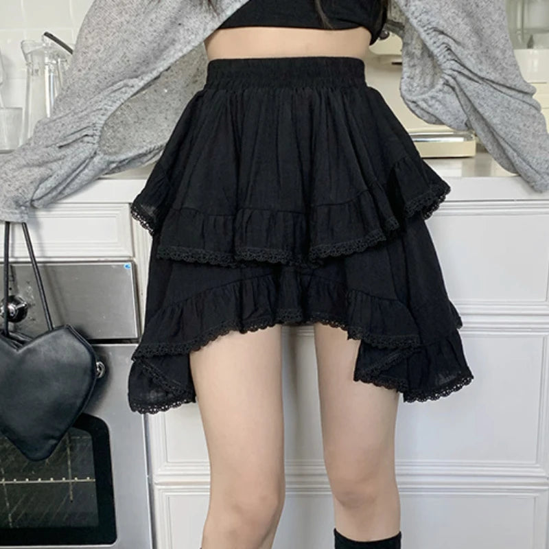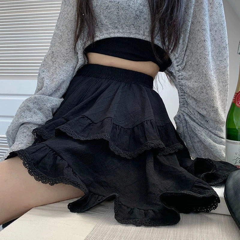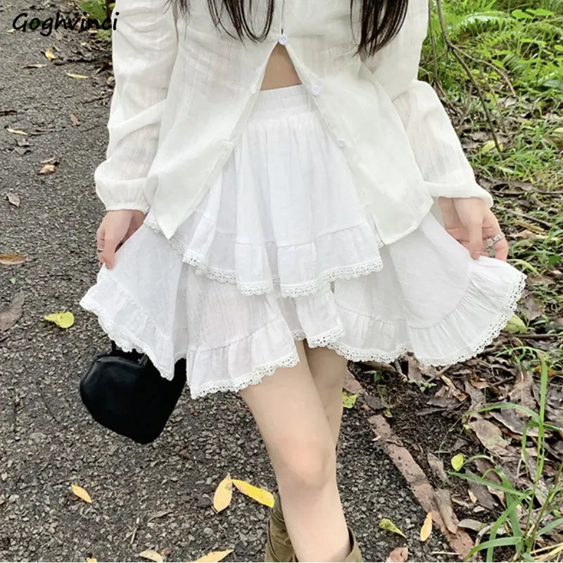 Mini Skirts Women Summer Ruffles Design Solid Sweet Fashion High Waist Lovely Korean Style All-match Girlish Tender New Simple