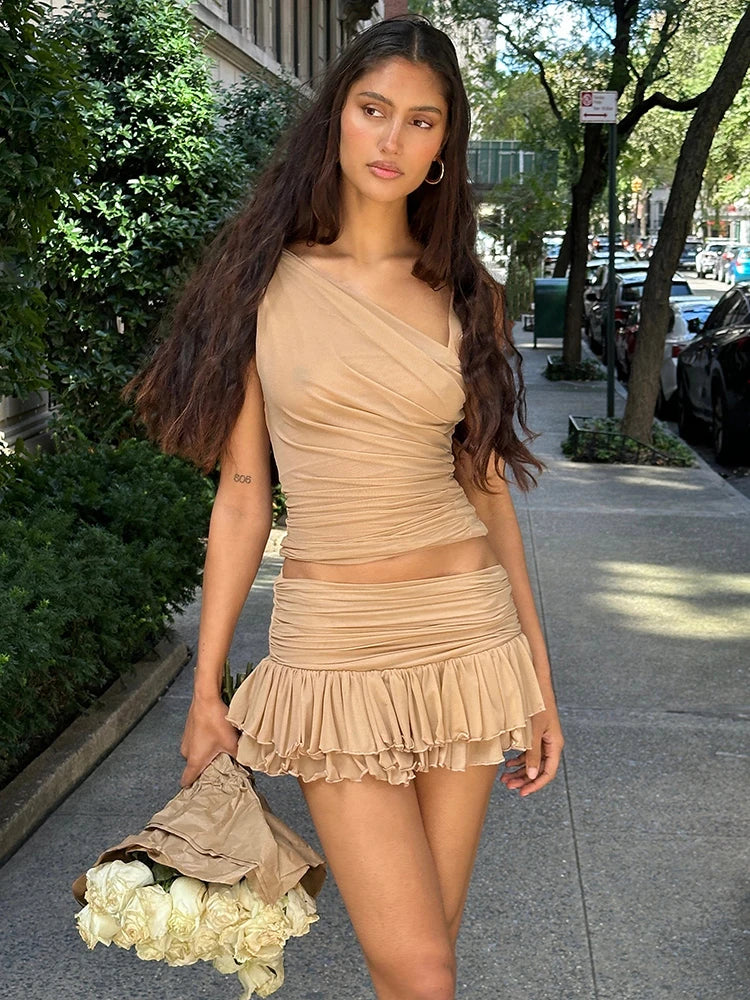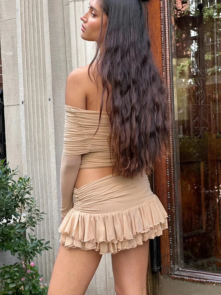 Sexy Off-shoulder Skirt Two Pieces Sets For Women Sleeveless Slim Fit Crop Top And Short Skirt Female Two Pieces Sets
