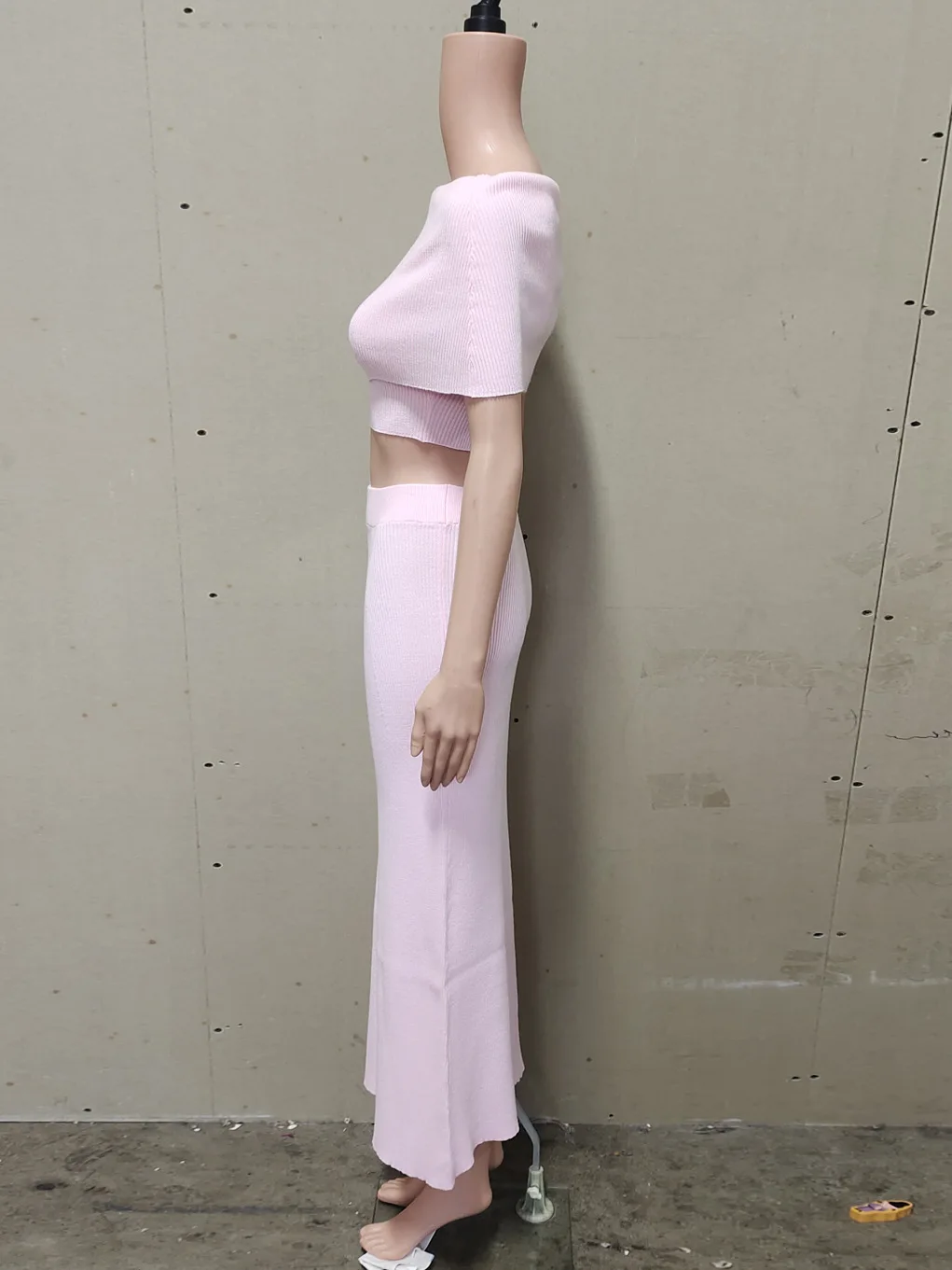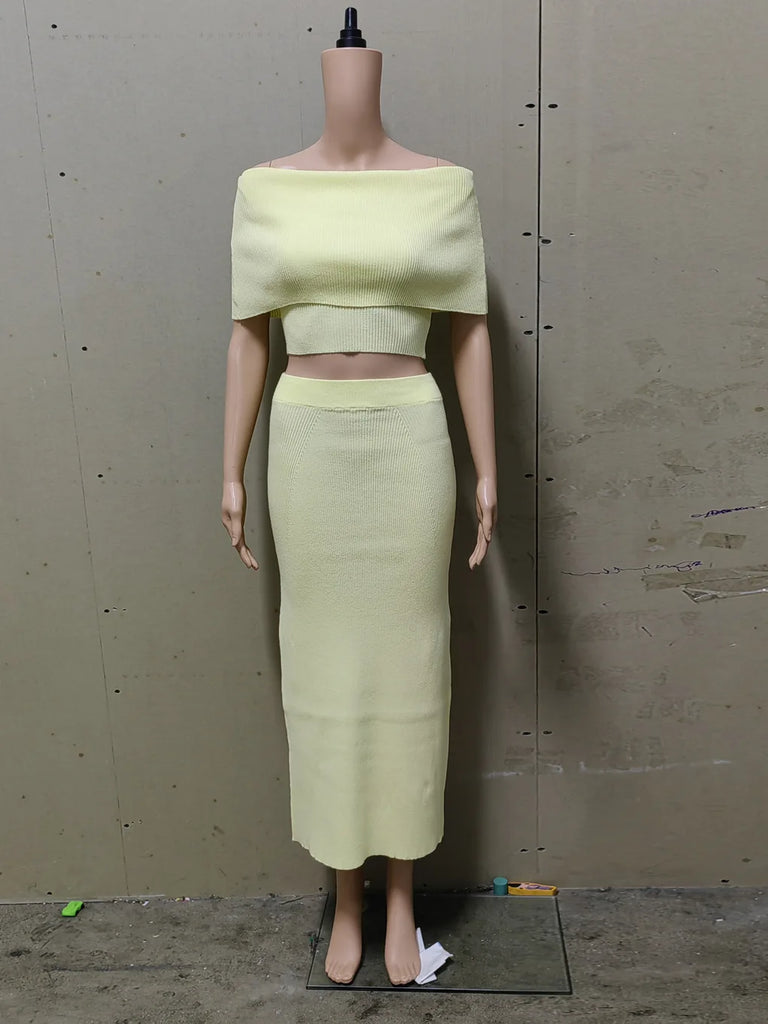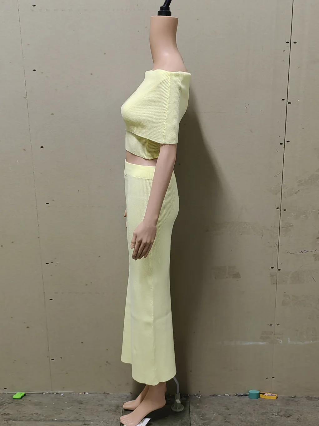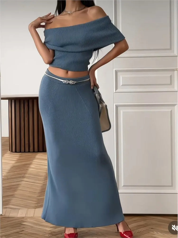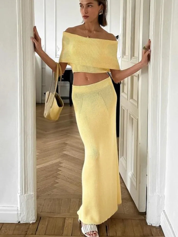 Slash Neck Crop Top And Long Skirt New Matching Sets Cotton Blend Vacation Beach Spring Summer Outfits Knit Elegant Women Sets