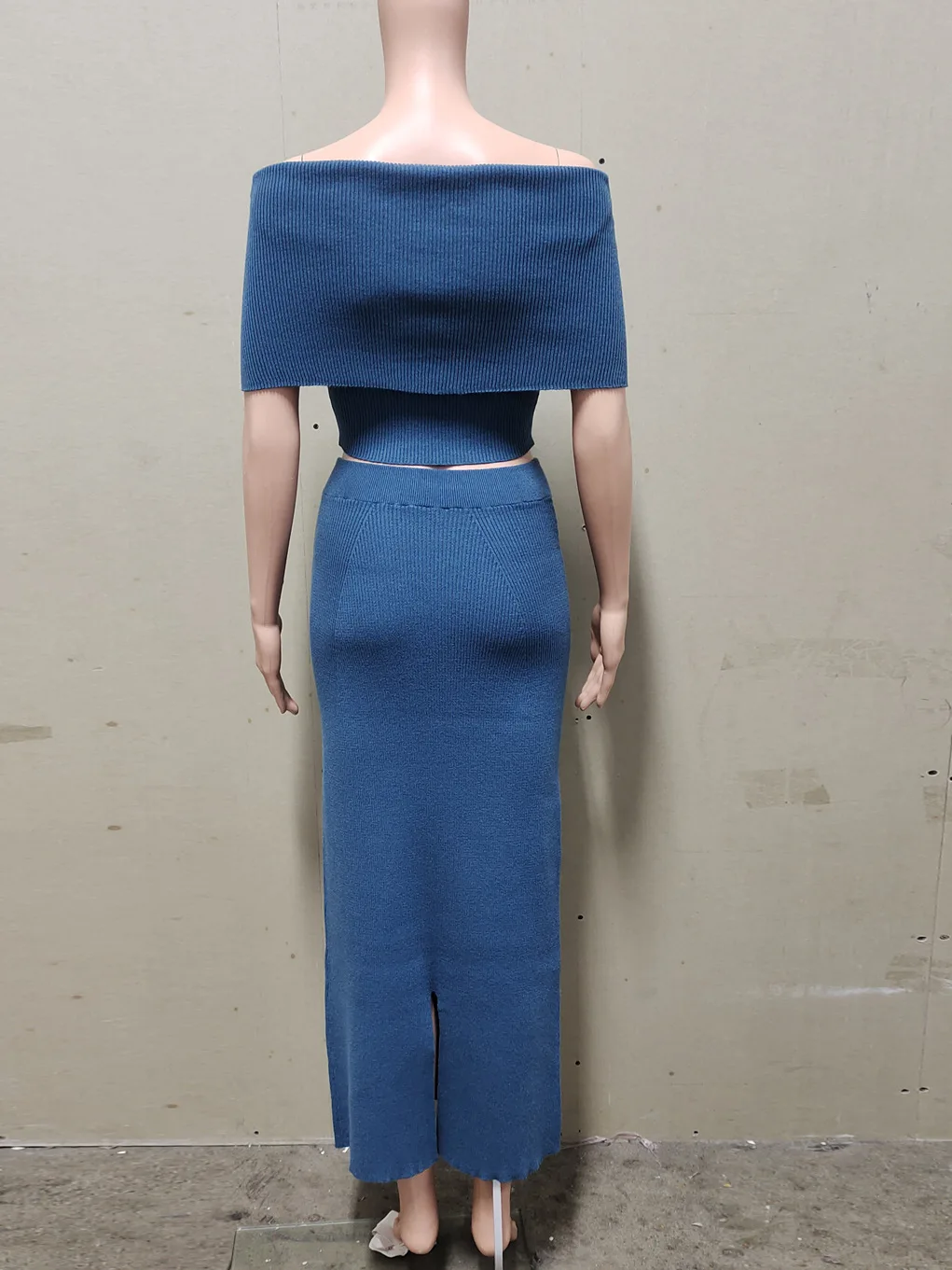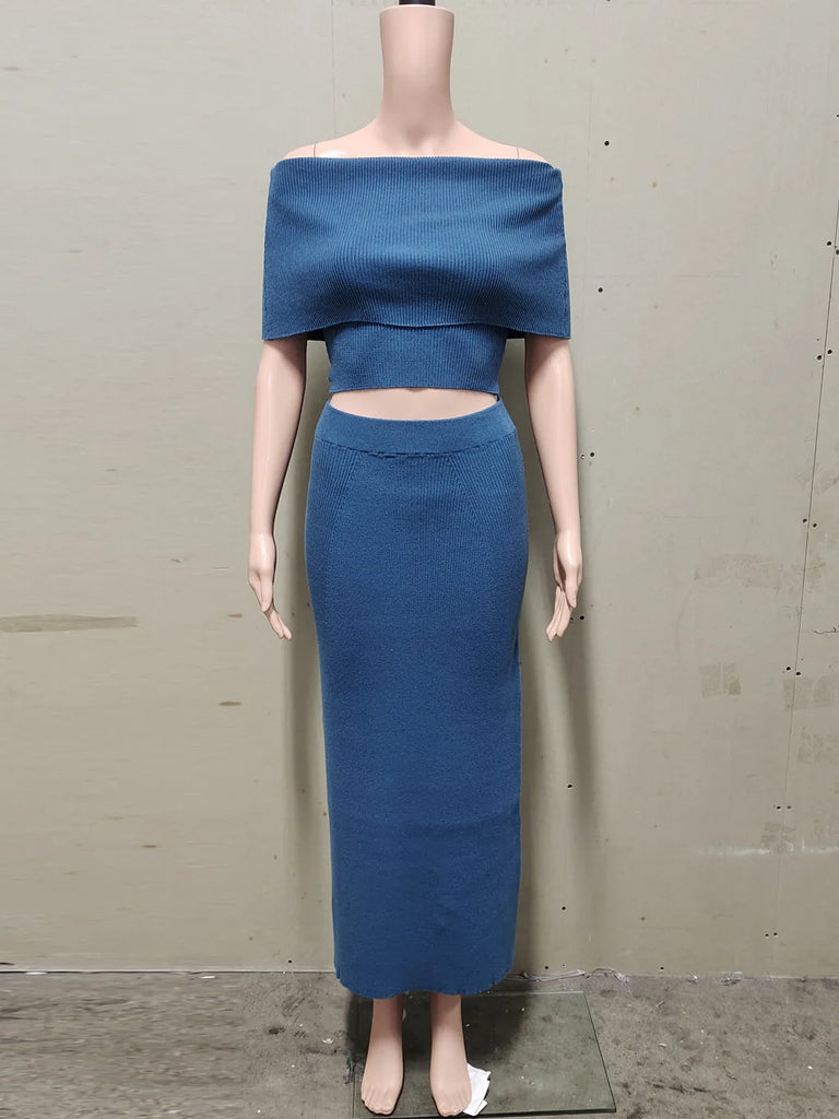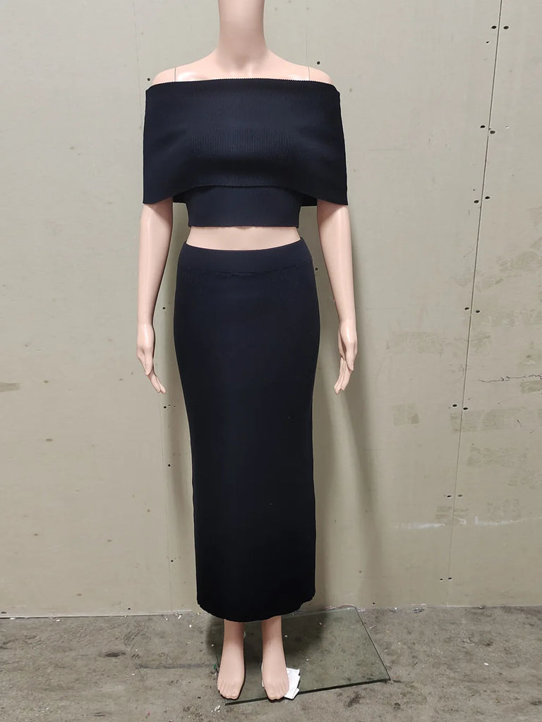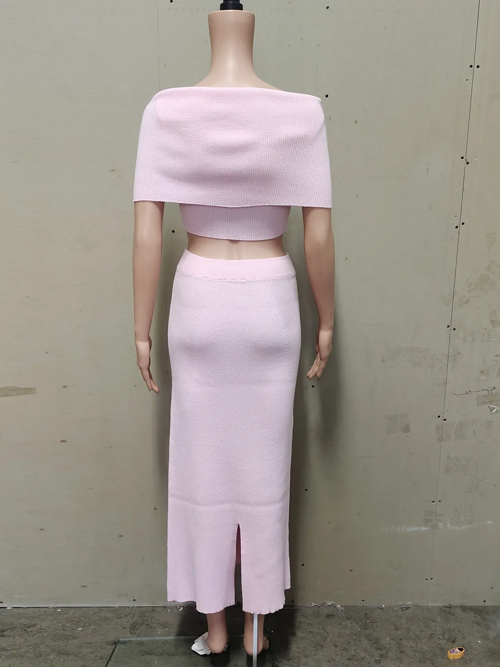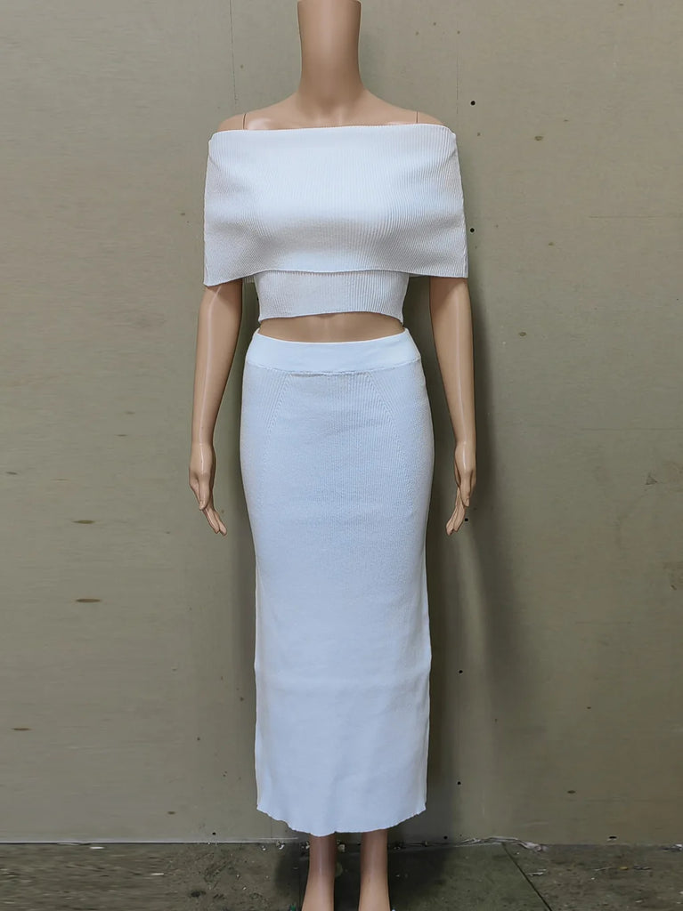 Slash Neck Crop Top And Long Skirt New Matching Sets Cotton Blend Vacation Beach Spring Summer Outfits Knit Elegant Women Sets