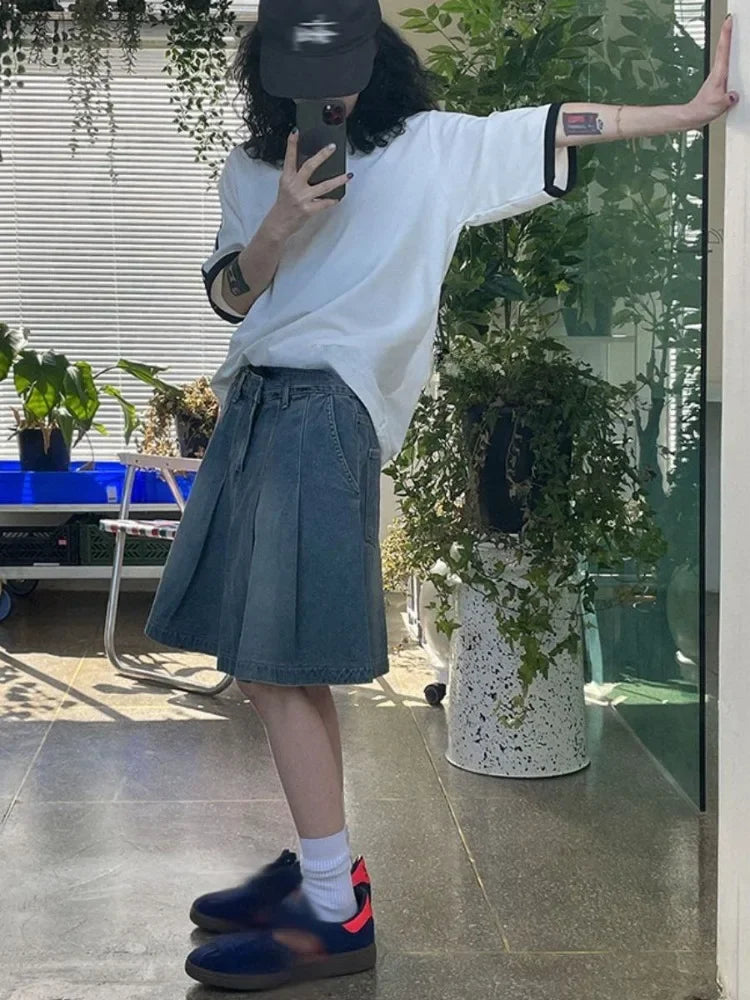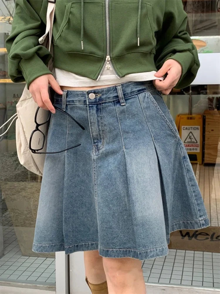 Streetwear Denim Skirt for Women High Waist A-line Jupe Fashion Casual Faldas Mujer Korean Y2K Mini Skirts