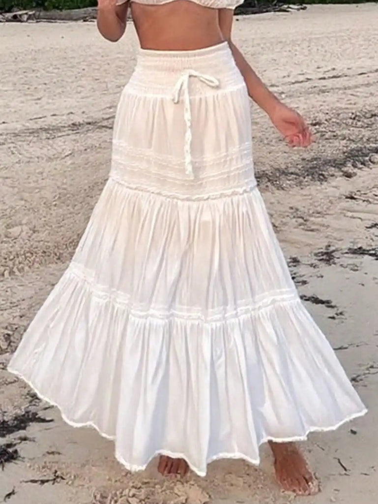 Women's High Waisted White Lace Patchwork Maxi Bubble Skirt Boho Style Suitable For Music Festivals Concerts Coachella Parties