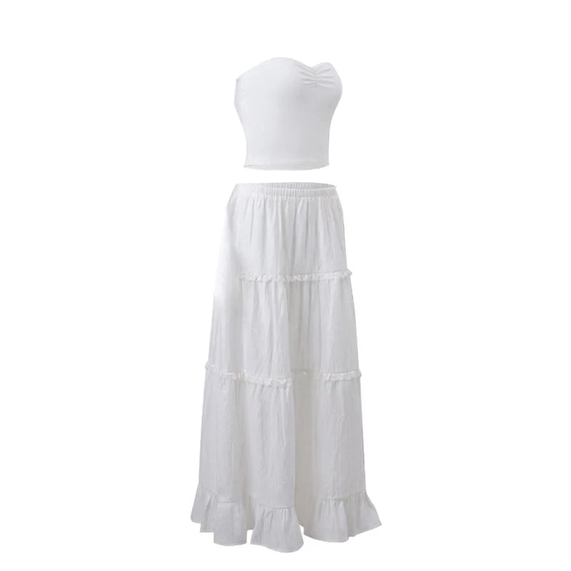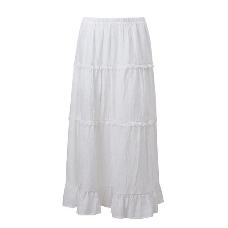 Y2k White Tiered Maxi Skirt Elastic Waist Ruffle Flowy Long Skirt Women Boho Summer Vacation Fairycore Outfit Streetwear